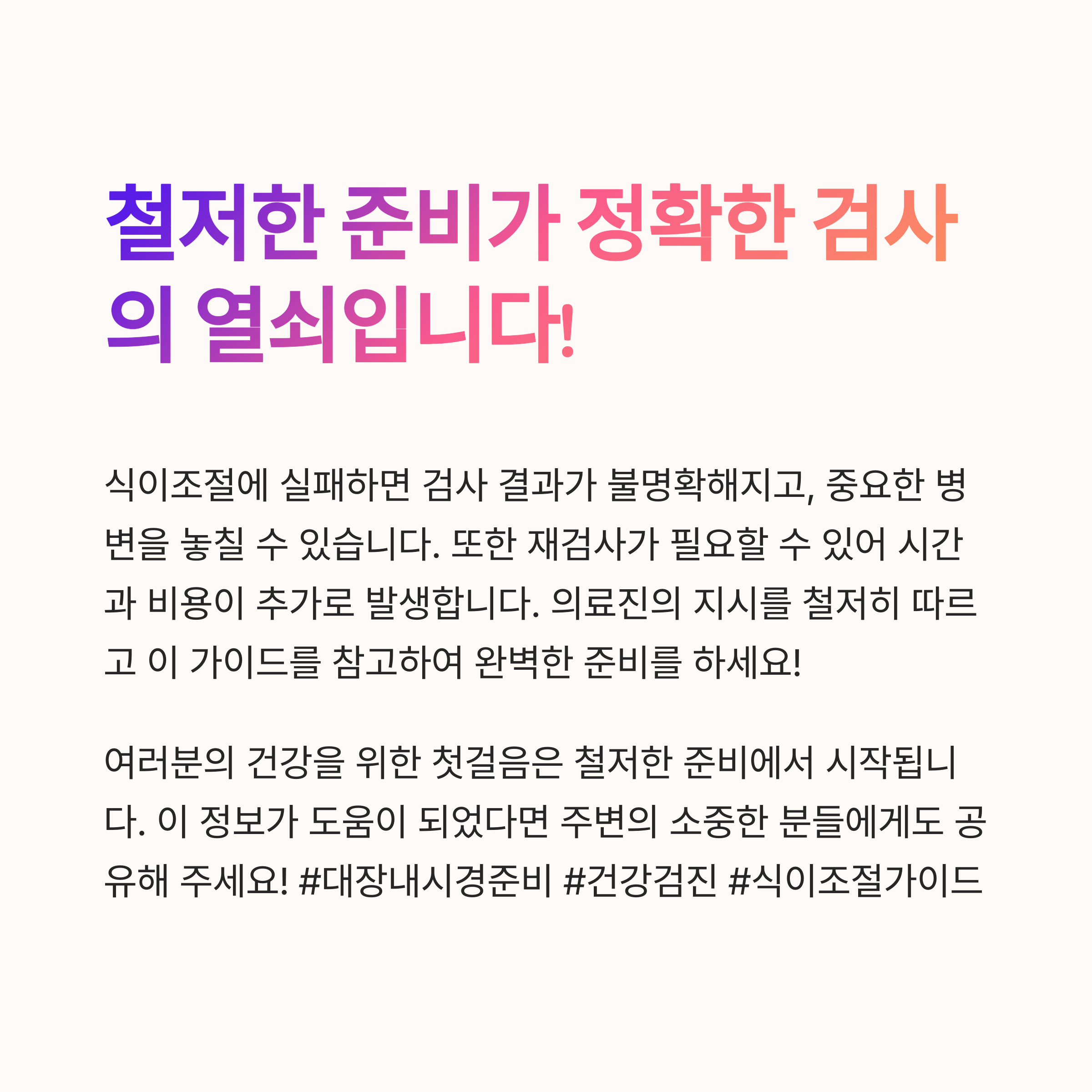 대장내시경은 장 내부를 정밀히 관찰하는 중요한 검사로, 사전 준비가 필수입니다.