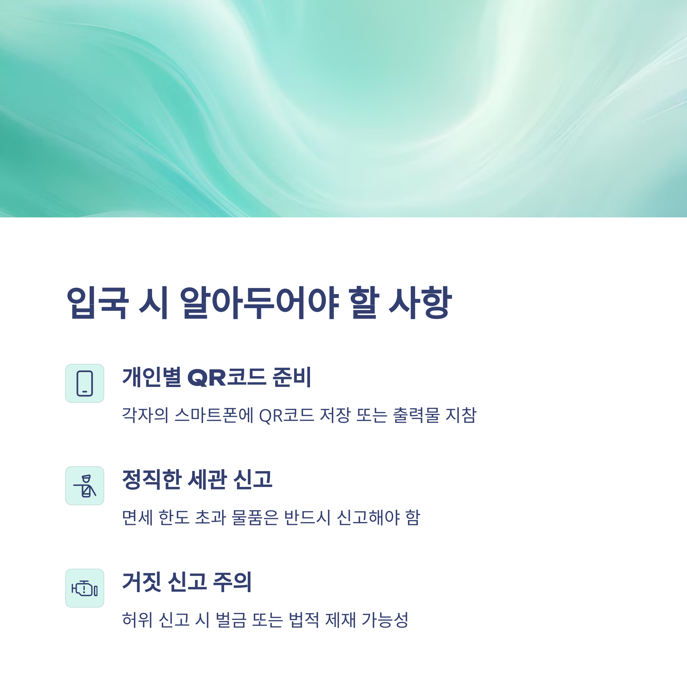 QR코드는 세관 신고에도 쓰이므로 입력한 데이터와 실제 여행 일정이 일치해야 합니다.