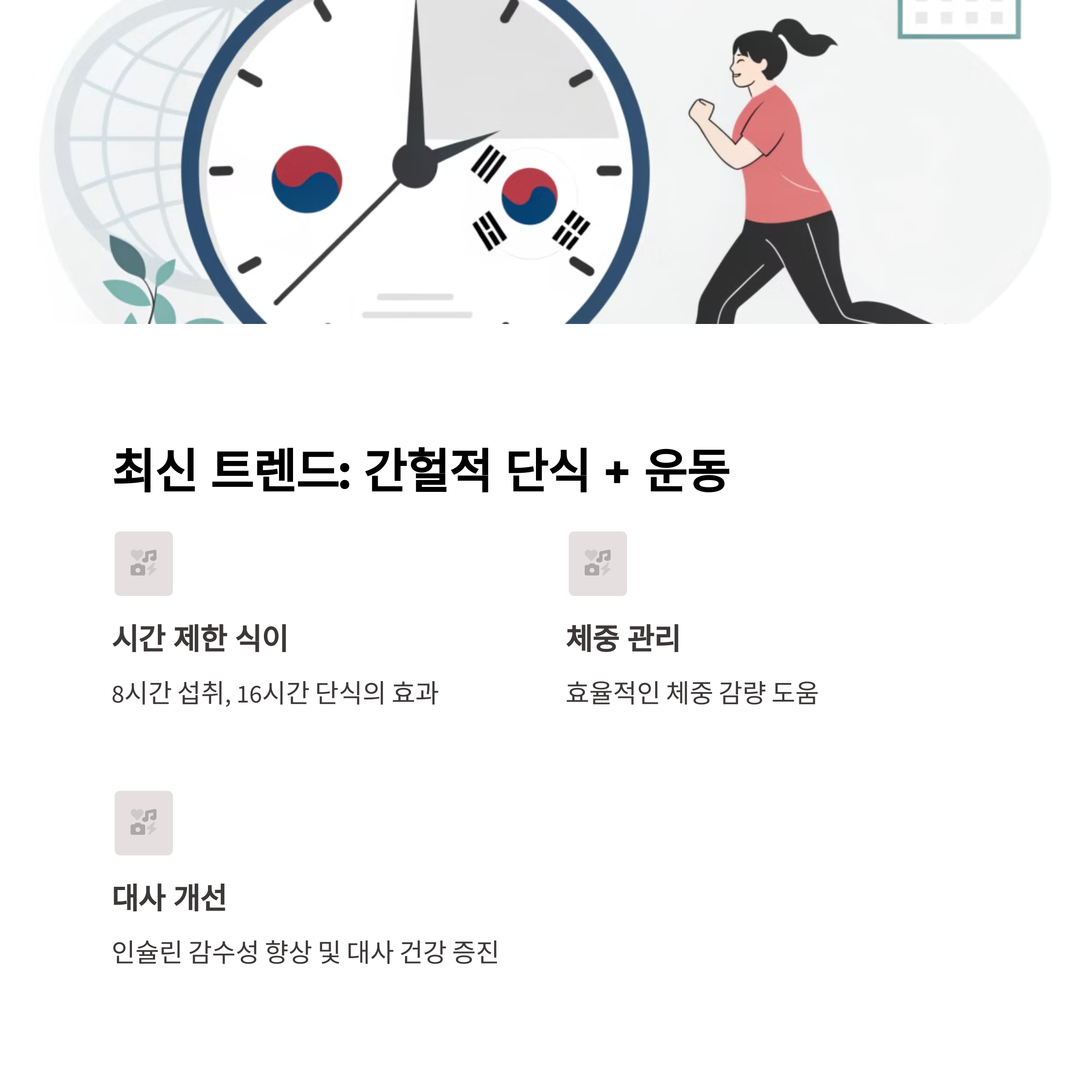 최근에는 간헐적 단식과 함께 공복 운동을 병행하는 트렌드가 확산되고 있습니다. 공복 운동으로 지방을 연소시키고, 이후 일정 시간 식사를 하지 않는 방식은 지방 대사 촉진대사 건강 개선에 도움을 줄 수 있다는 분석입니다. 특히 인슐린 감수성 향상과 혈당 조절 효과도 기대할 수 있으며, 체지방 감량 외에도 전반적인 건강관리 전략으로 주목받고 있습니다. 하지만 이러한 방식도 철저한 계획과 건강 상태 점검이 동반되어야 합니다.