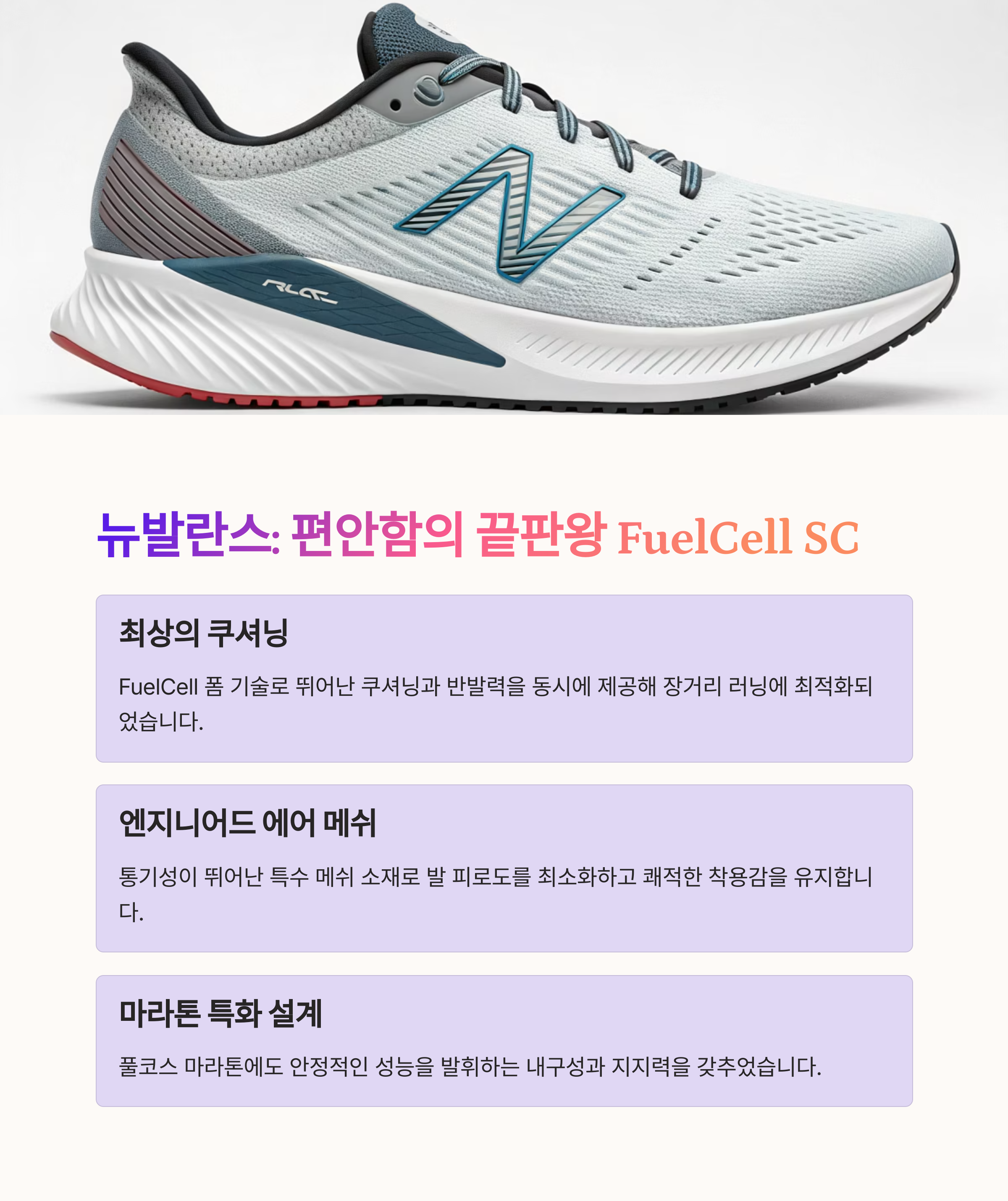 쿠셔닝은 장거리 달리기나 충격 완화가 필요한 경우 중요한 역할을 합니다.