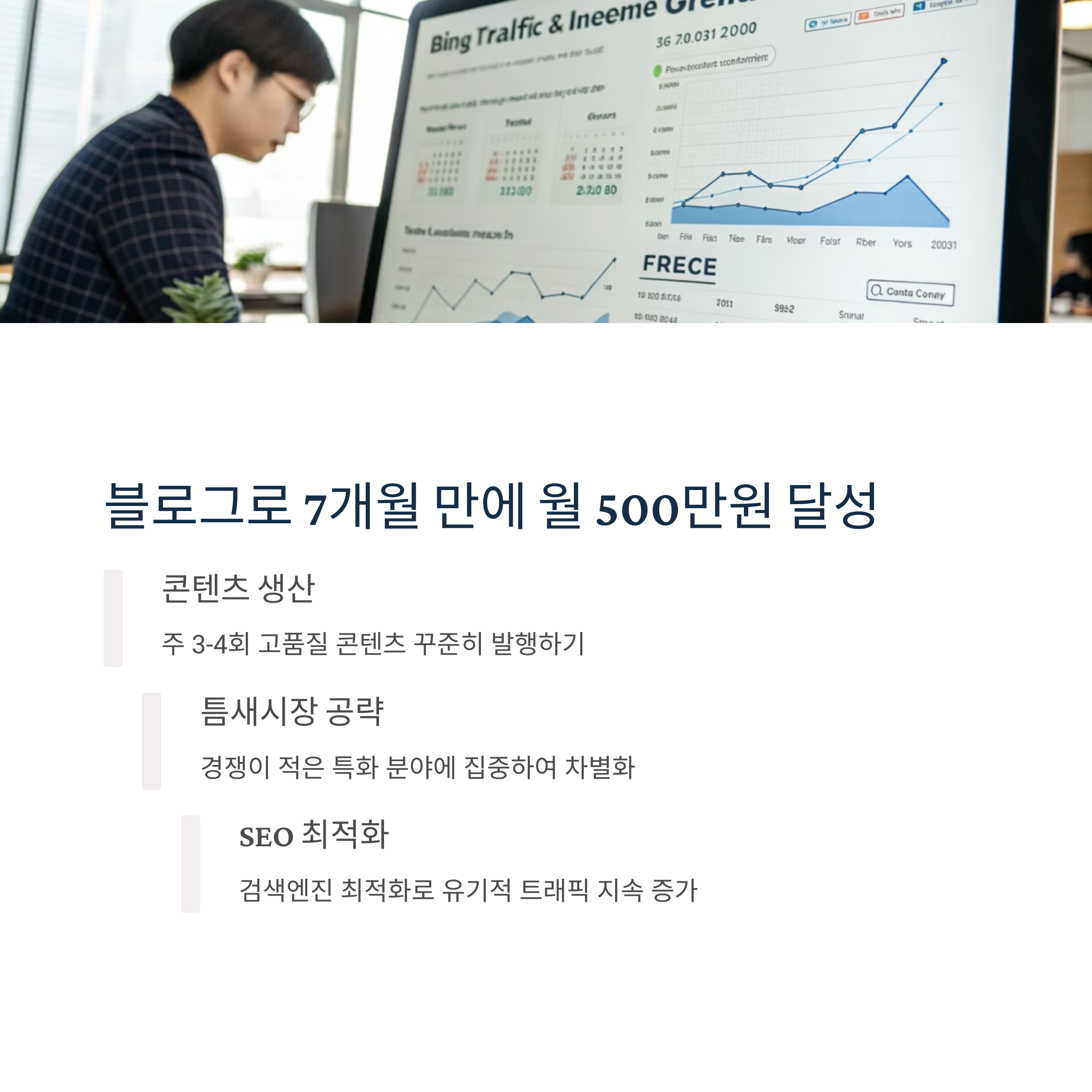 성공 요인 | 콘텐츠 생산, 틈새시장 공략, SEO 최적화가 핵심입니다. |