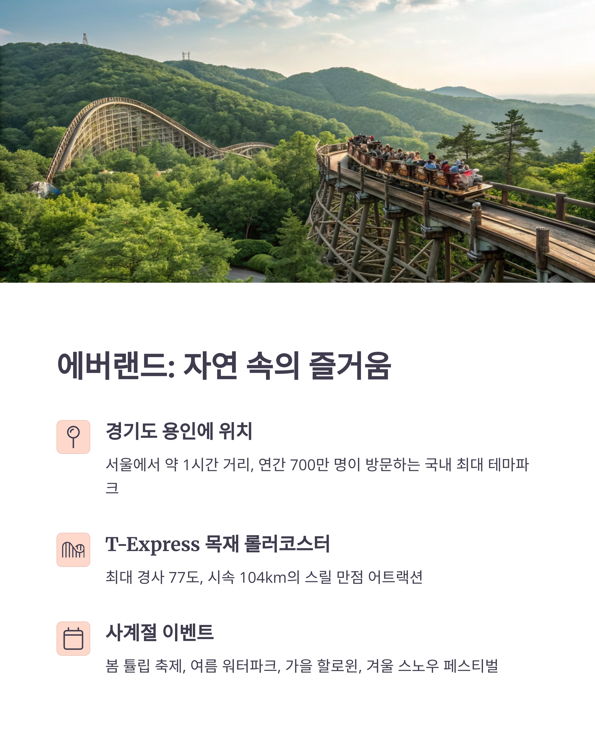 먼저, 강력한 롤러코스터 'T-Express'로 잘 알려진 에버랜드는 전국 놀이공원 방문객들에게 사랑받는 명소입니다.