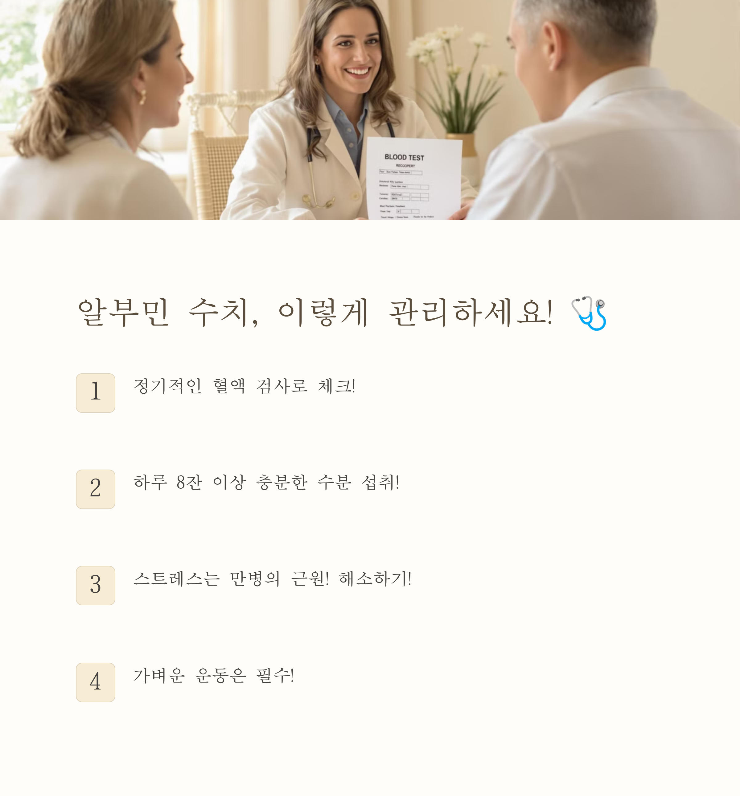 특히 간 질환이나 신장 질환이 있는 사람들은 알부민 수치가 낮아질 위험이 높으므로 정기적인 검사와 관리가 필요합니다.