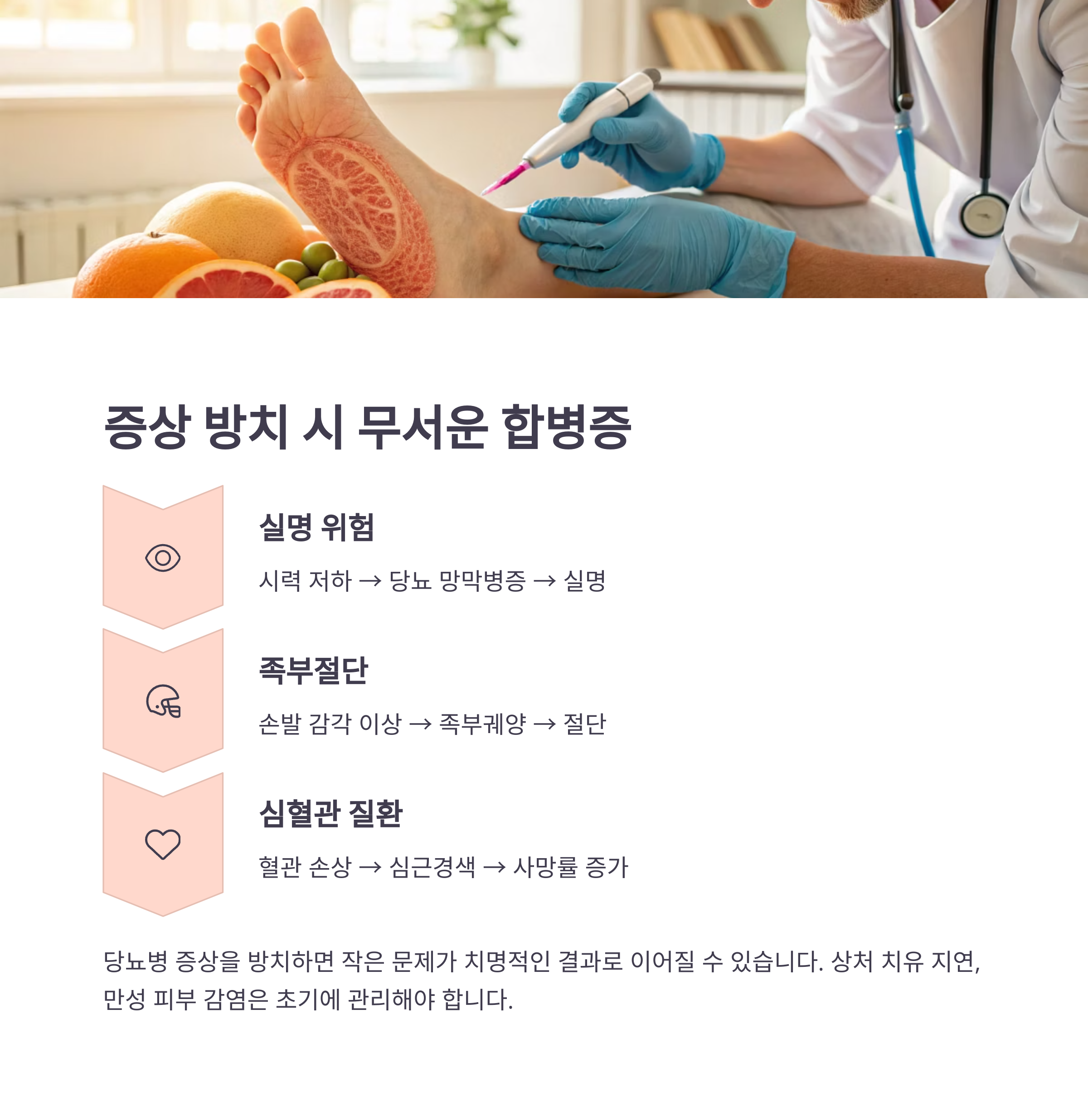무증상으로 시작되는 당뇨병, 특히 20~30대에서 급증하고 있습니다. 방치하면 실명, 족부절단, 심혈관질환으로 이어질 수 있습니다. 당신의 건강이 위험할 수 있습니다. 지금 바로 확인하세요.