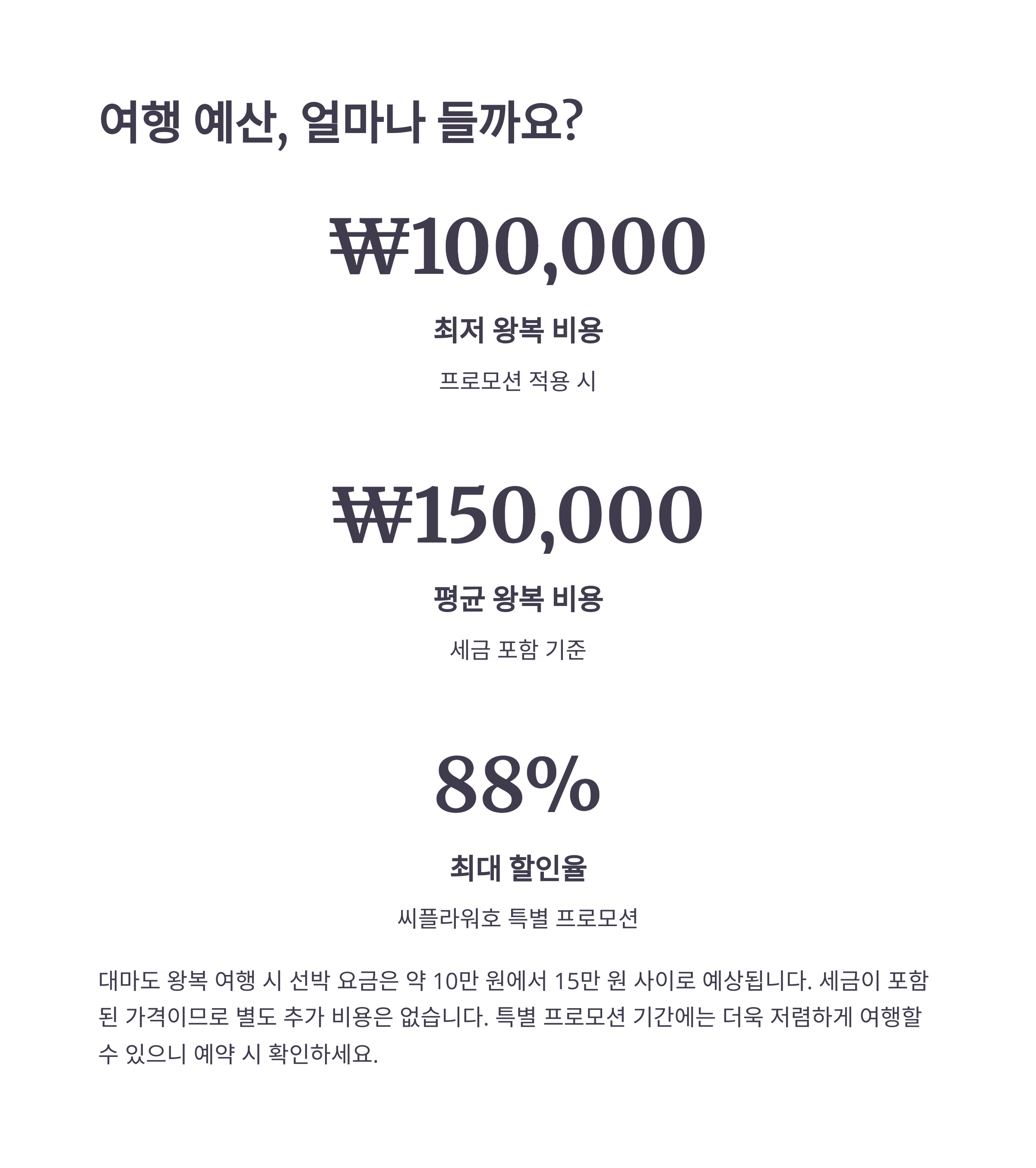 배편 소요 시간과 비용을 비교하면, 효율적인 일정을 세울 수 있습니다.