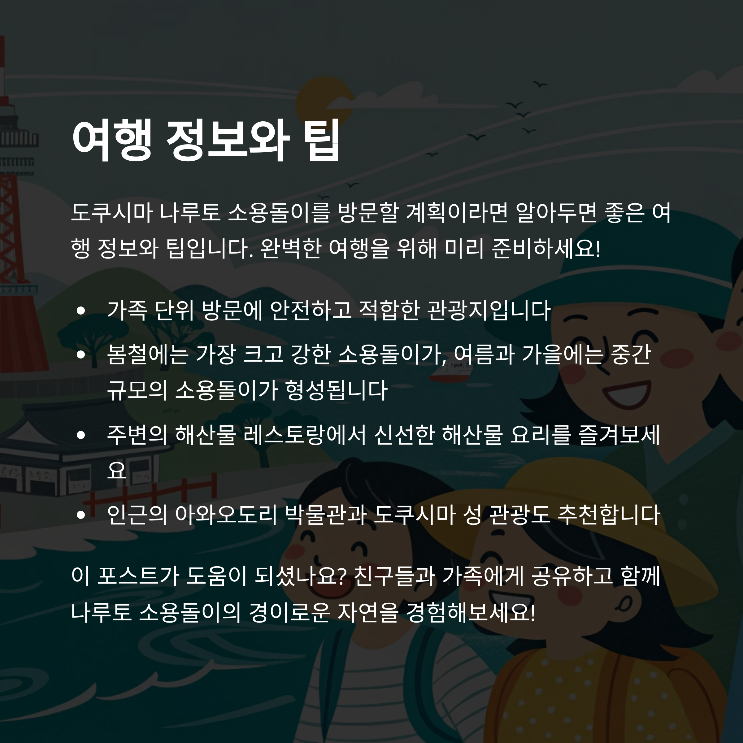 여러분은 나루토 소용돌이에 대해 들어보신 적 있나요? 혹은 직접 관람한 경험이 있다면, 어떠셨는지도 궁금합니다. 댓글로 소중한 여행 이야기를 공유해주세요!