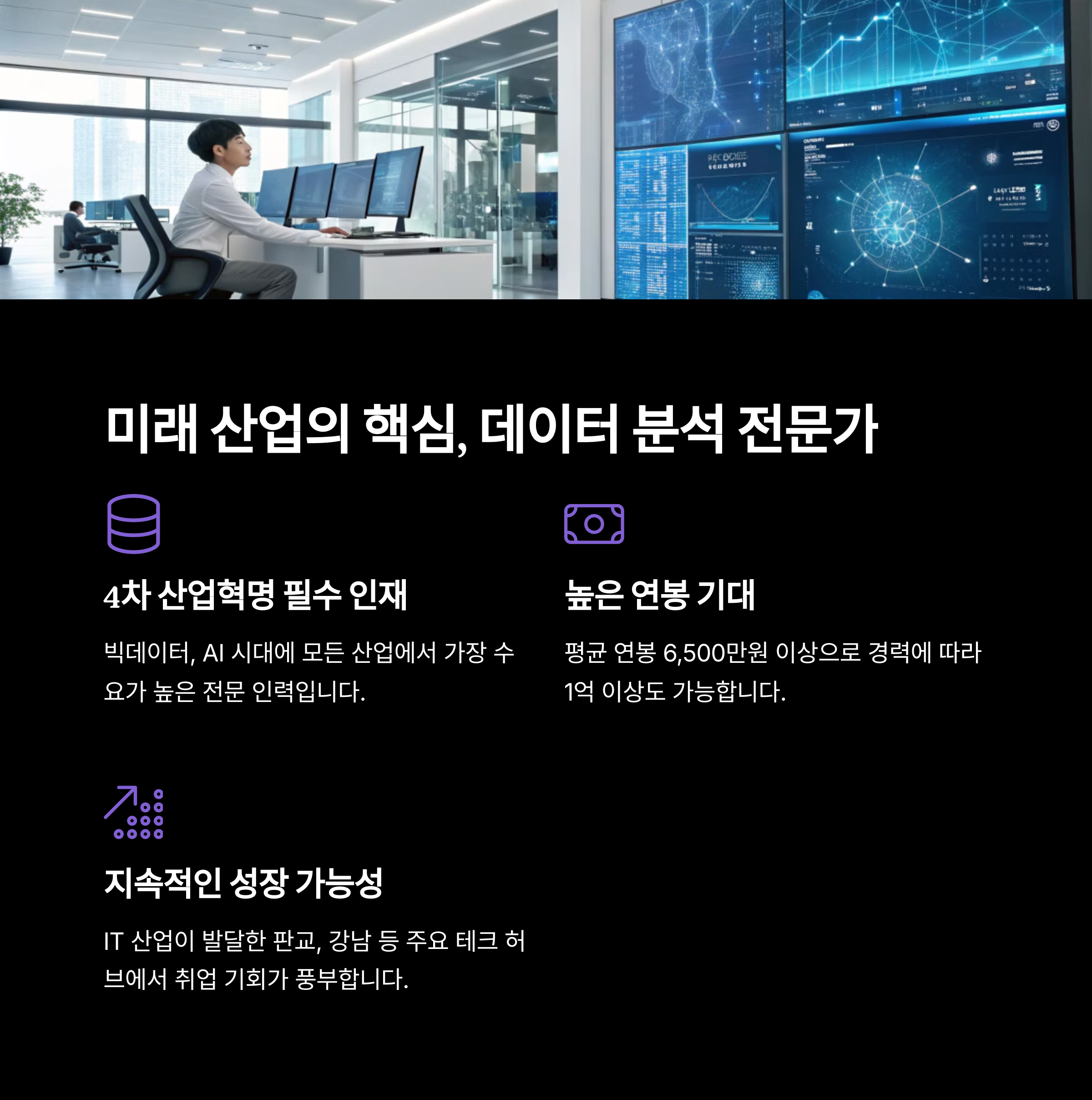 데이터 분석 전문가는 미래지향적 직군으로, 성장 가능성이 무궁무진합니다.