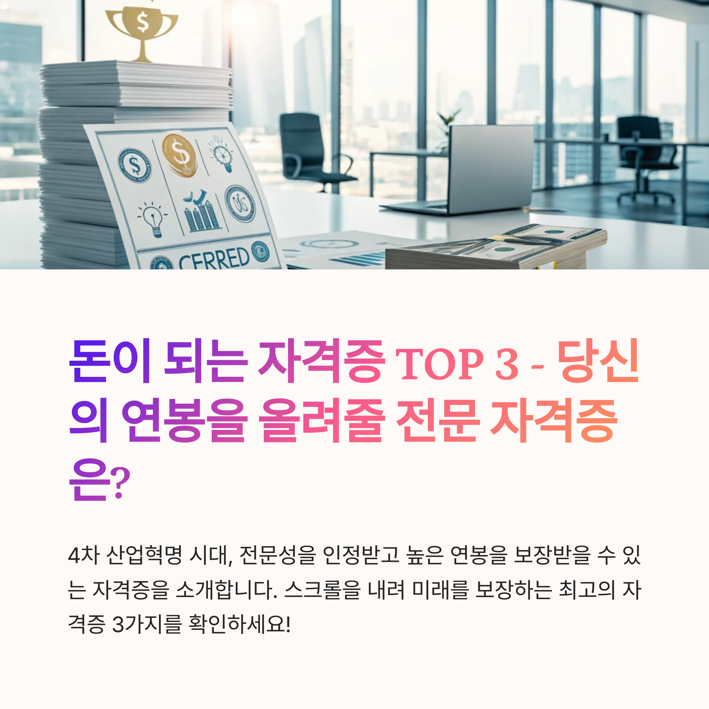 오늘은 여러분의 커리어를 한 단계 업그레이드해줄 돈 되는 자격증에 대해 소개해 드립니다.