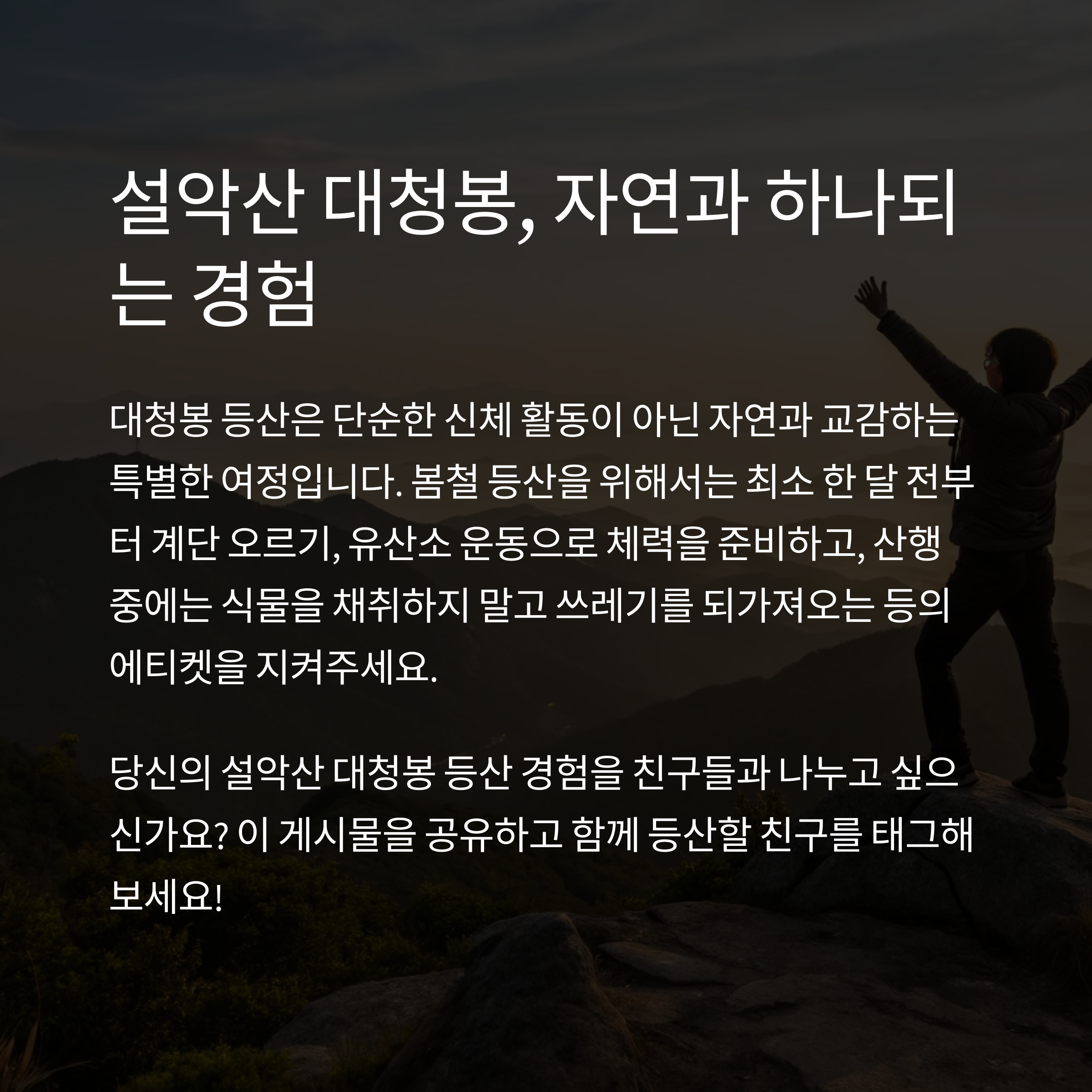 설악산 대청봉을 다녀오신 적이 있거나, 봄철 산행에 대해 공유하고 싶은 경험이 있다면 댓글로 자유롭게 남겨주세요. 서로의 이야기를 통해 더 풍성한 정보를 나눌 수 있기를 기대합니다!