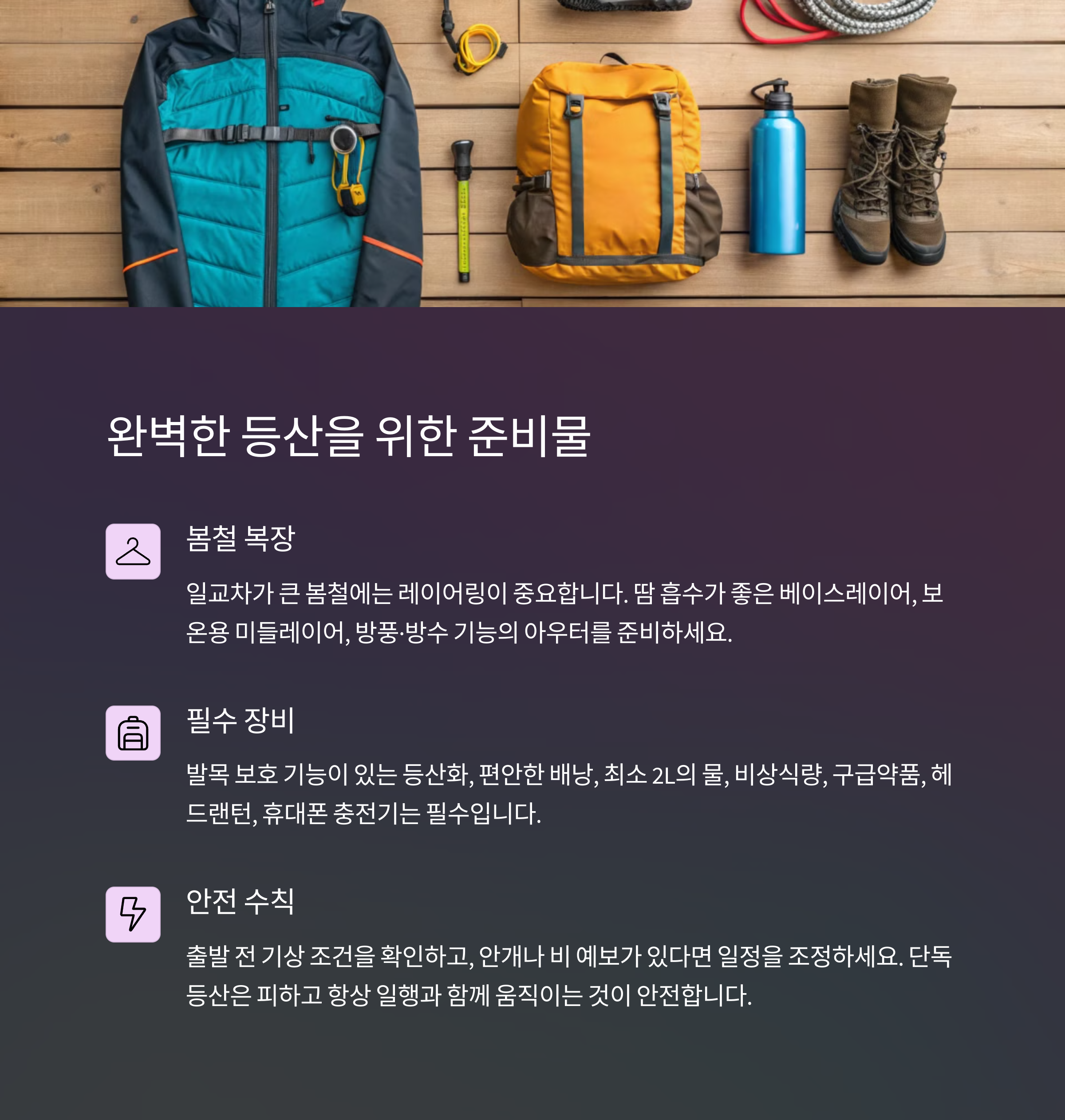 | 대청봉 철쭉 시즌 | 추천 등산 코스 | 등산 준비물 |