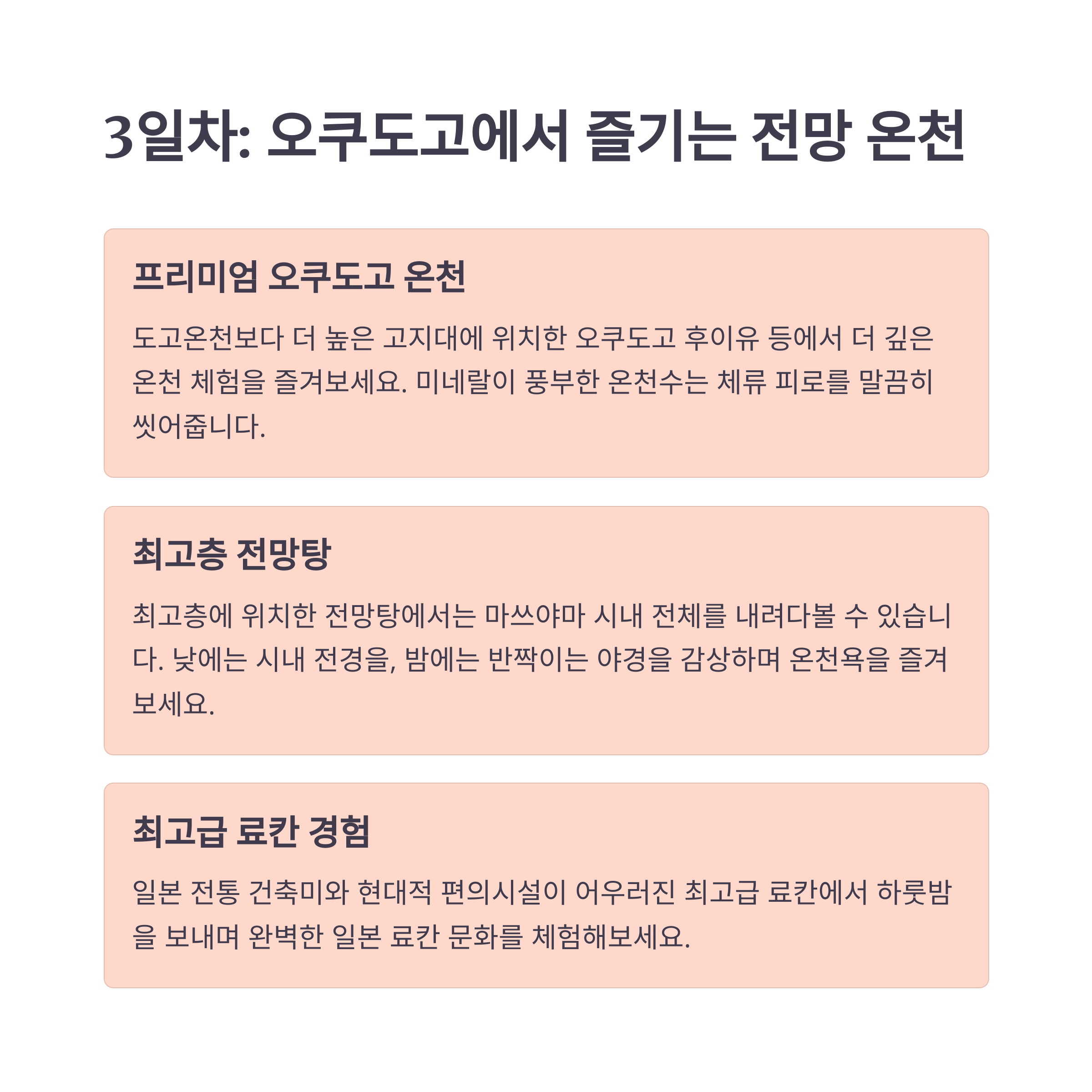안녕하세요, smartbox입니다! 일본 에히메 현의 온천 도시, 마쓰야마로 떠나실 준비가 되셨나요? 오늘은 마쓰야마 관광의 핵심인 온천 체험을 중심으로, 도고온천오쿠도고를 아우르는 3박 4일 추천 코스를 알아볼 건데요. 가성비 좋은 숙박과 체험 팁까지 모두 확인하실 수 있습니다.