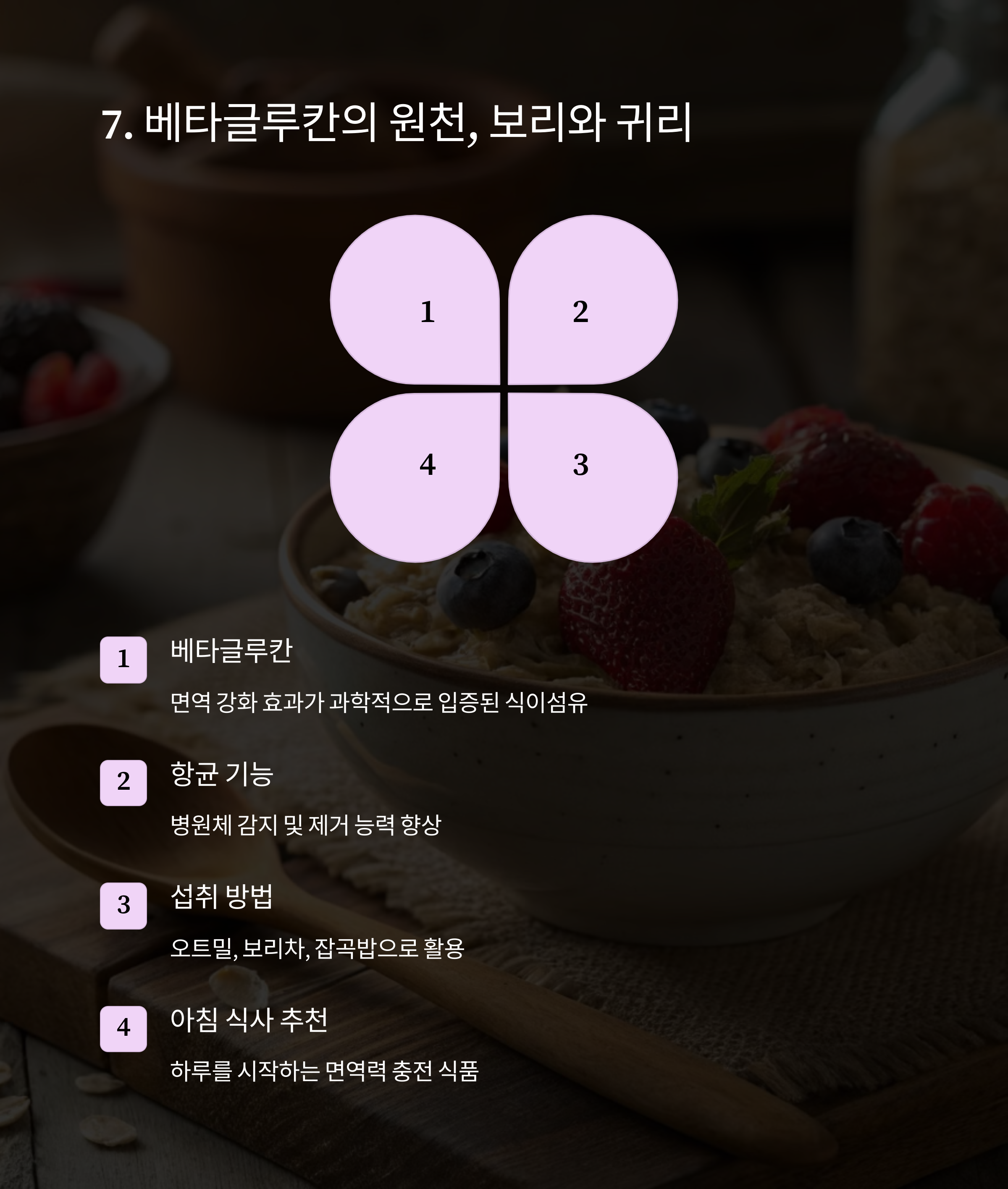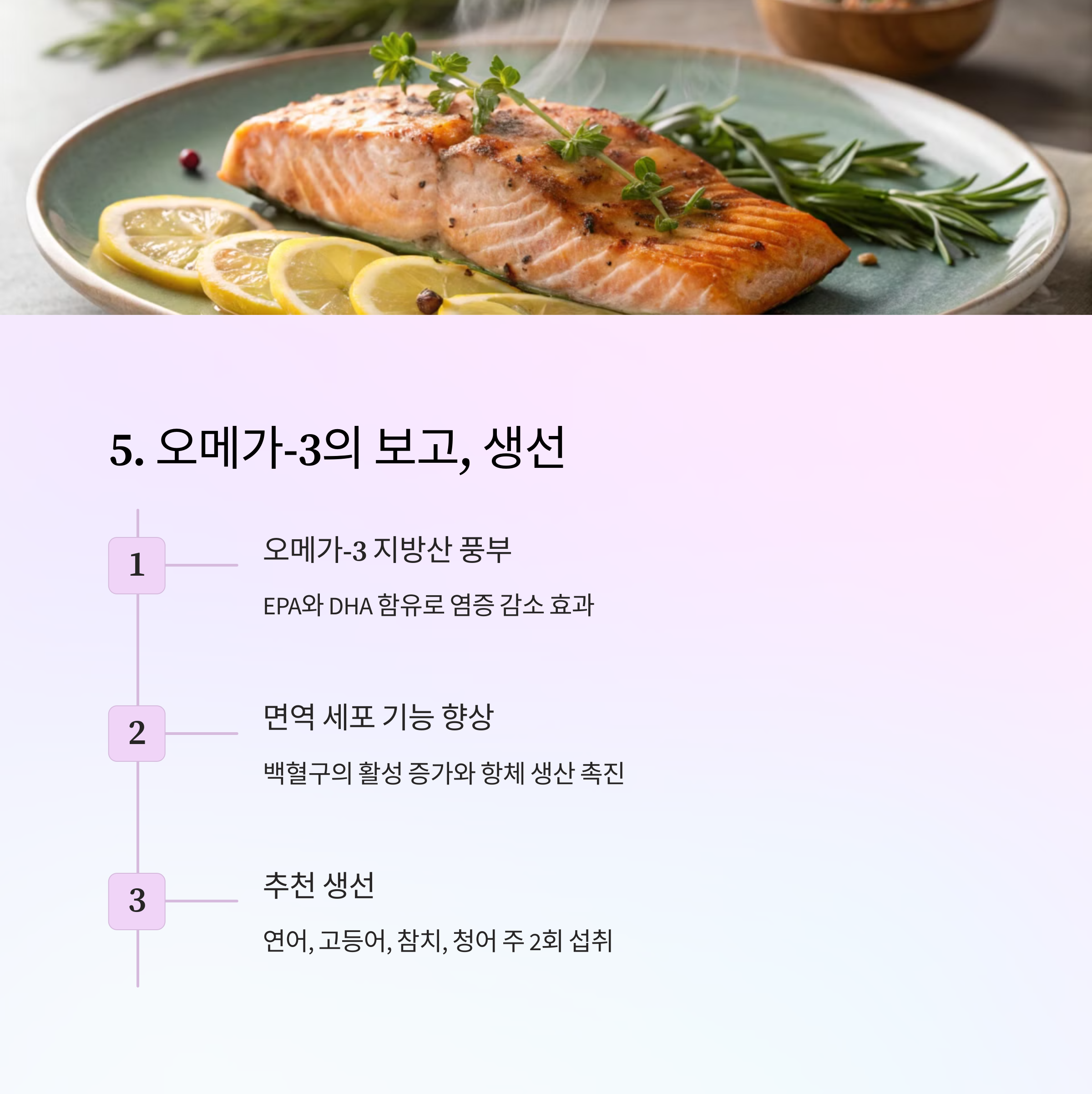 | 면역력 강화 식단에 필수 | 매일 섭취하기 좋은 건강 식품 | 면역 세포 보호에 효과적 |