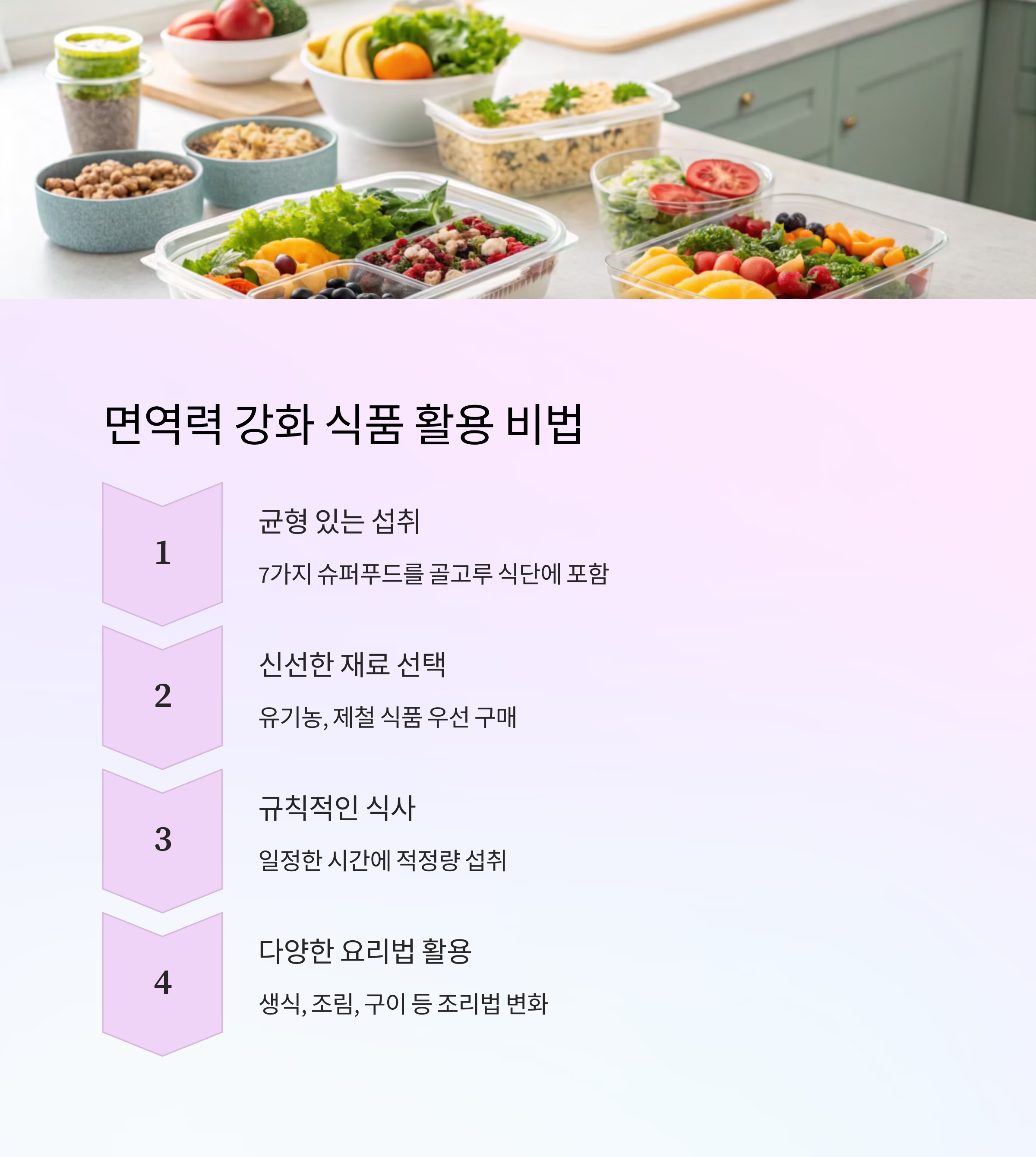| 건강한 식습관 | 매일의 식사가 면역력 유지에 큰 역할을 합니다. |