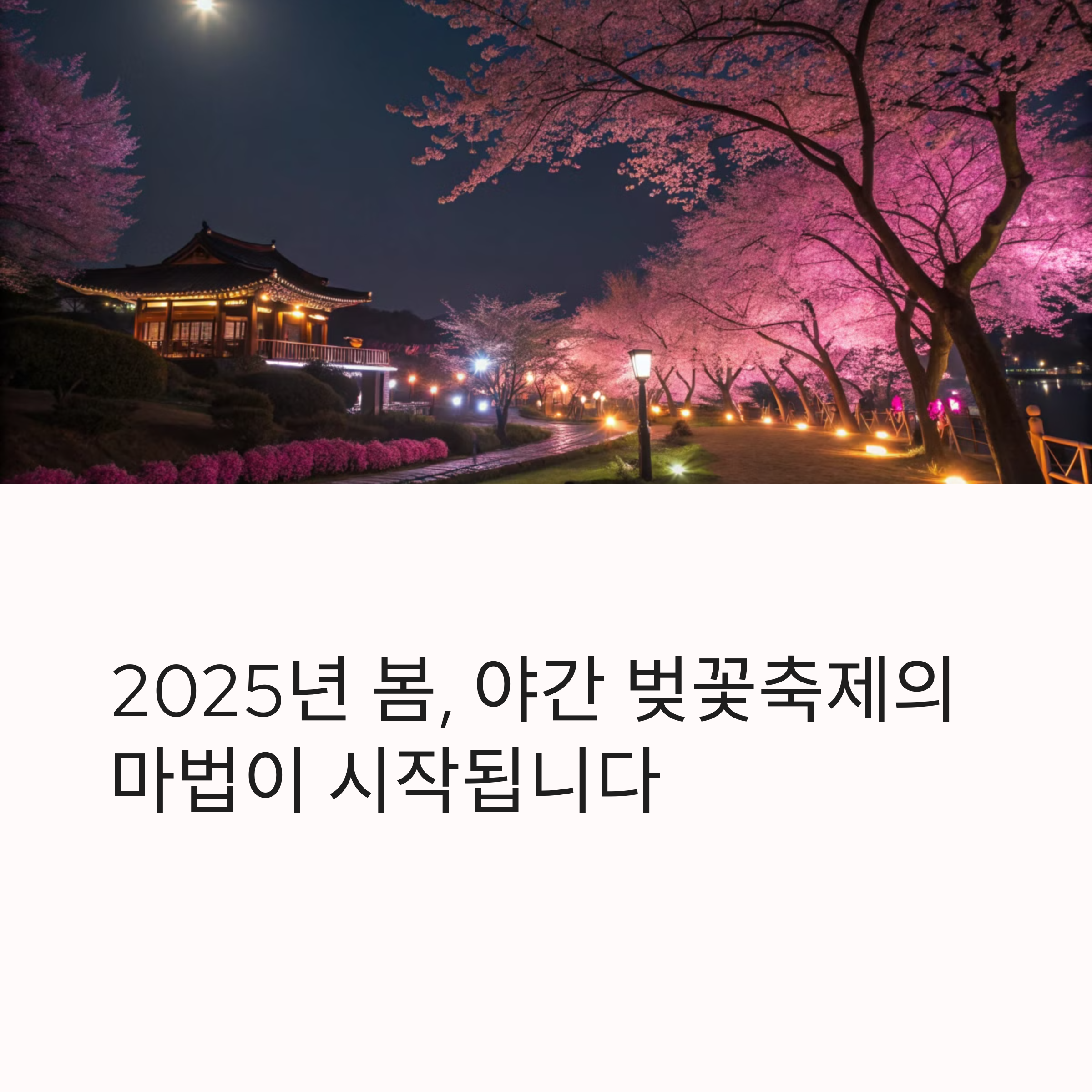 이번 콘텐츠에서는 2025년 대표적인 야간 벚꽃 명소를 소개하고, 각 축제장의 특징과 즐길 거리까지 꼼꼼히 안내해드립니다. 지금부터 밤에 더 아름다운 벚꽃의 세계로 함께 떠나볼까요?