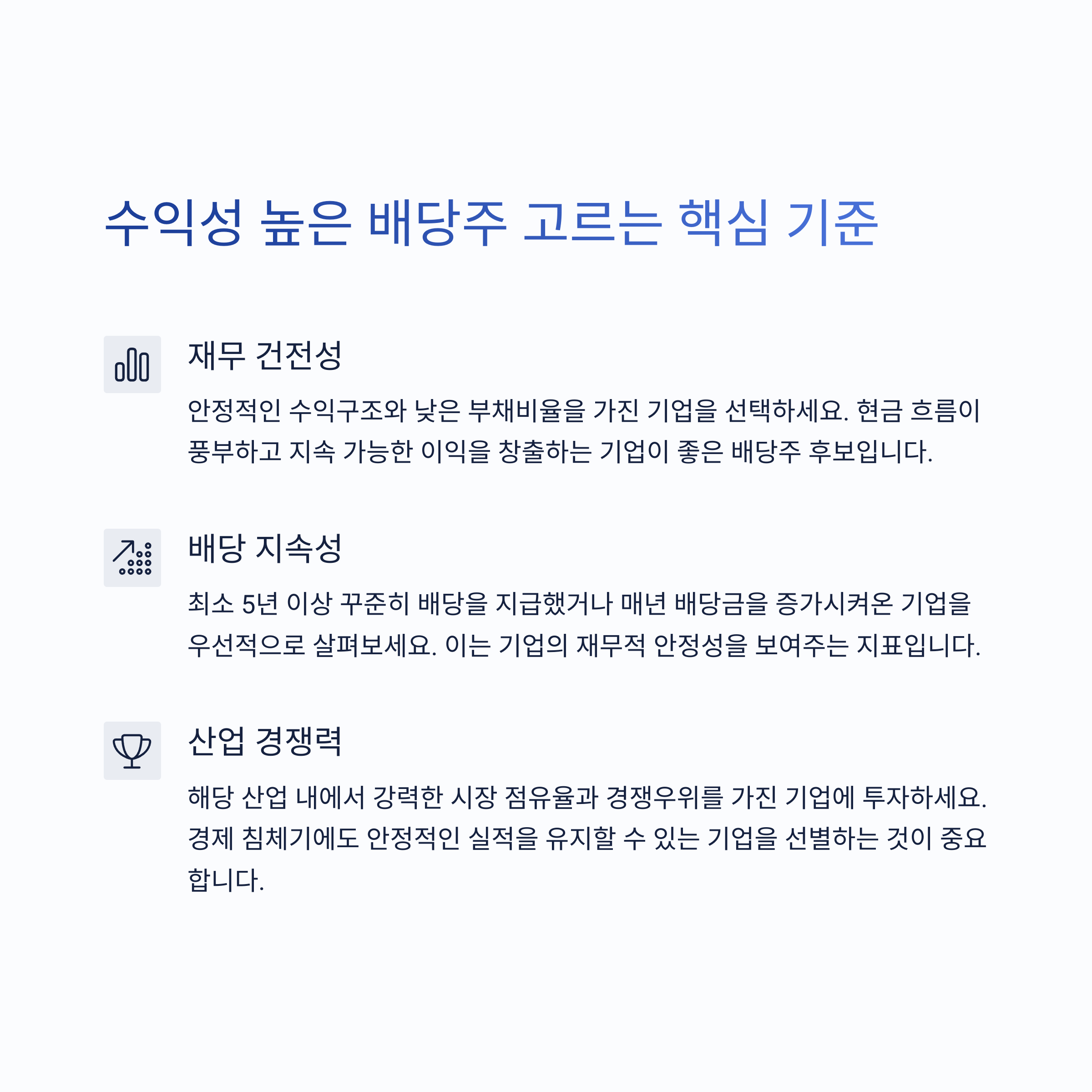 안정성과 수익성을 모두 고려한 투자 전략 | 꾸준한 배당 지급이 가능한 기업 | 분산 투자와 자동 배당 수령의 장점 |