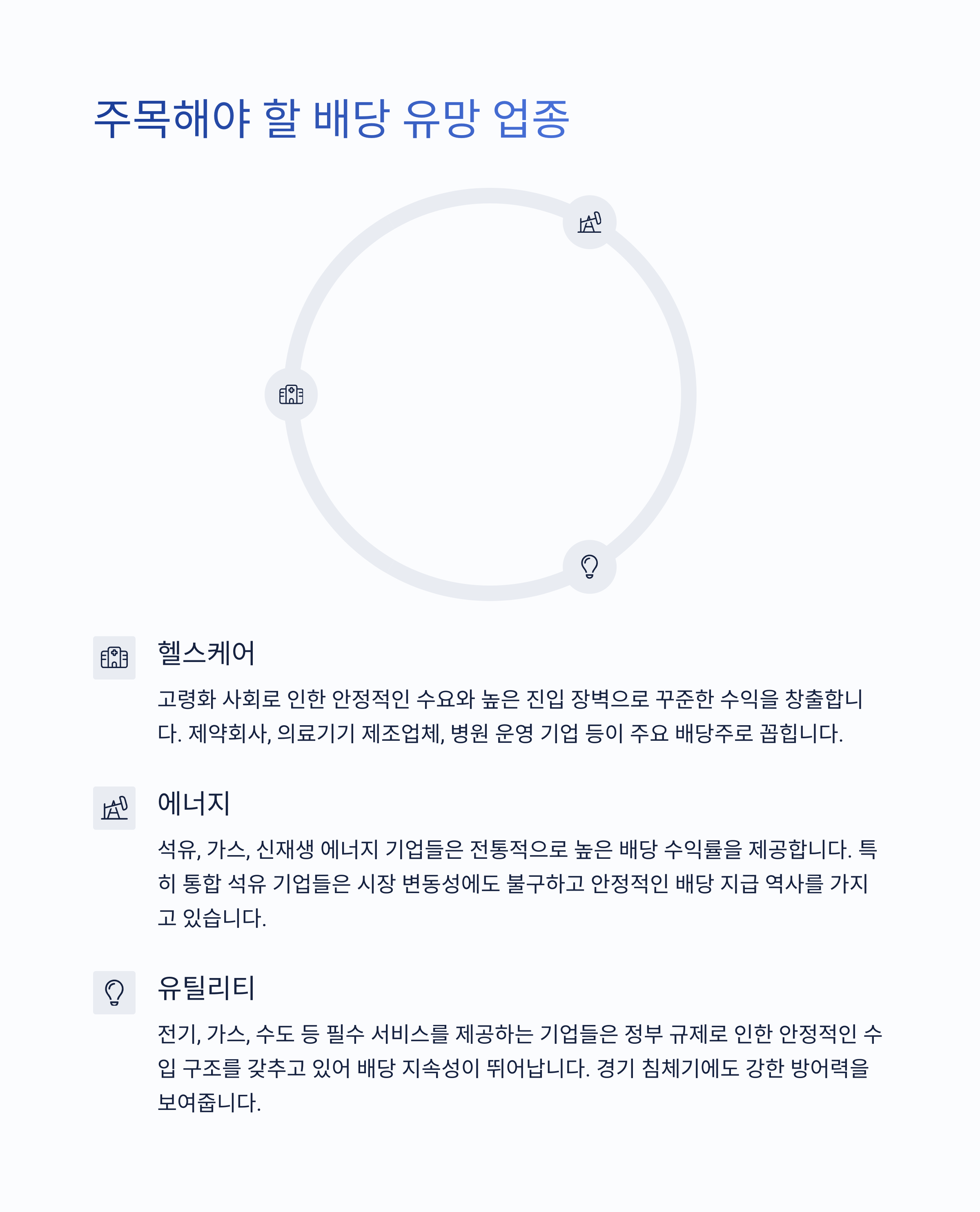 배당 포트폴리오 | 안정성과 수익을 함께 고려한 종목 구성 전략입니다. |