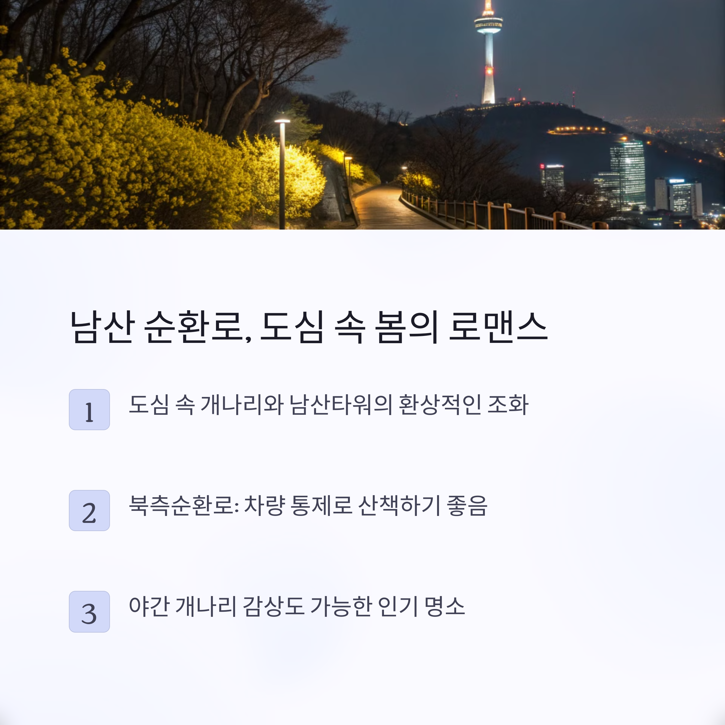 주요 감상 포인트 서울 응봉산, 남산, 남한산성 등 5대 명소 소개