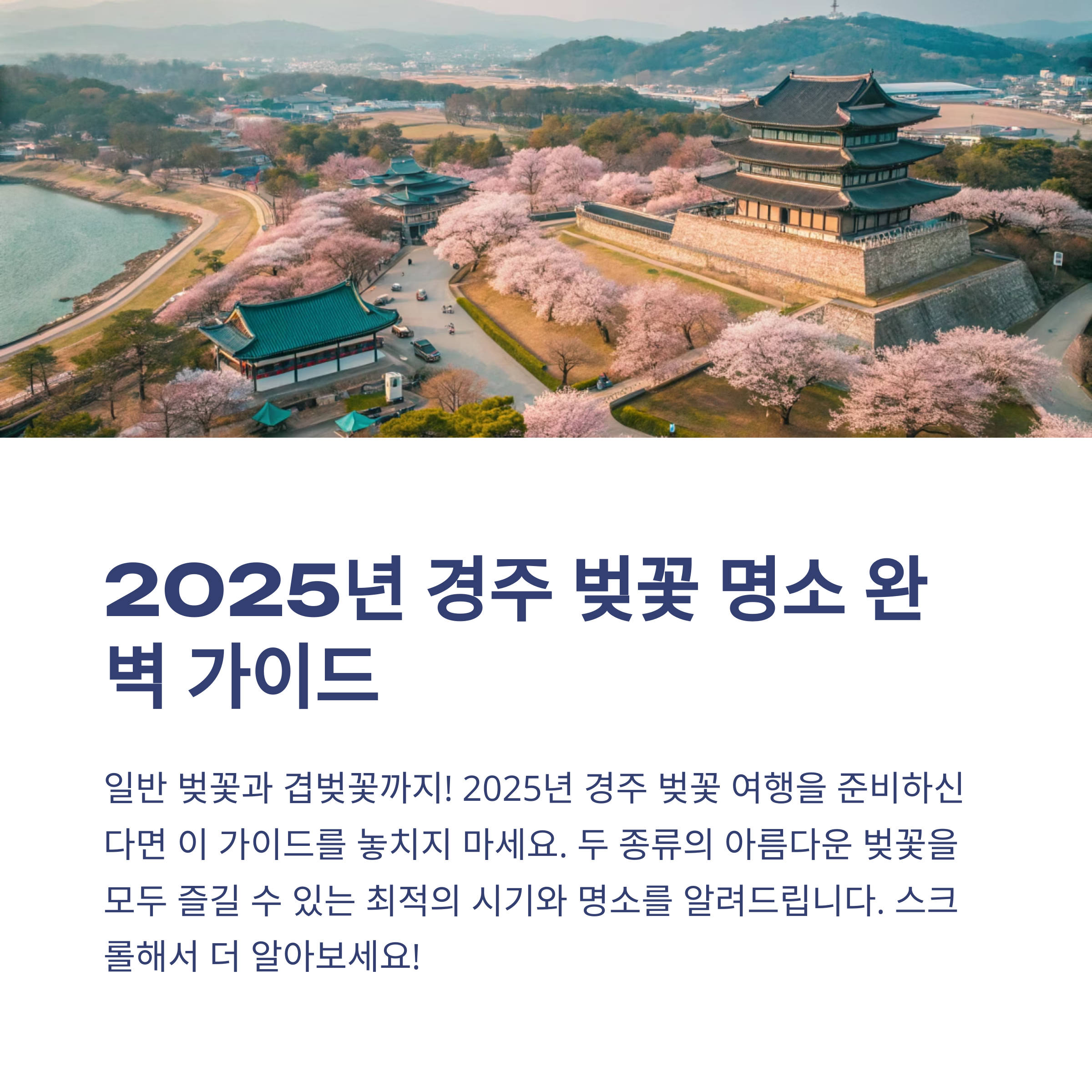 경주의 일반 벚꽃 시즌은 보통 4월 초에 피크를 맞이하며, 이미 많은 분들이 아름다운 벚꽃을 즐기셨을 거예요.