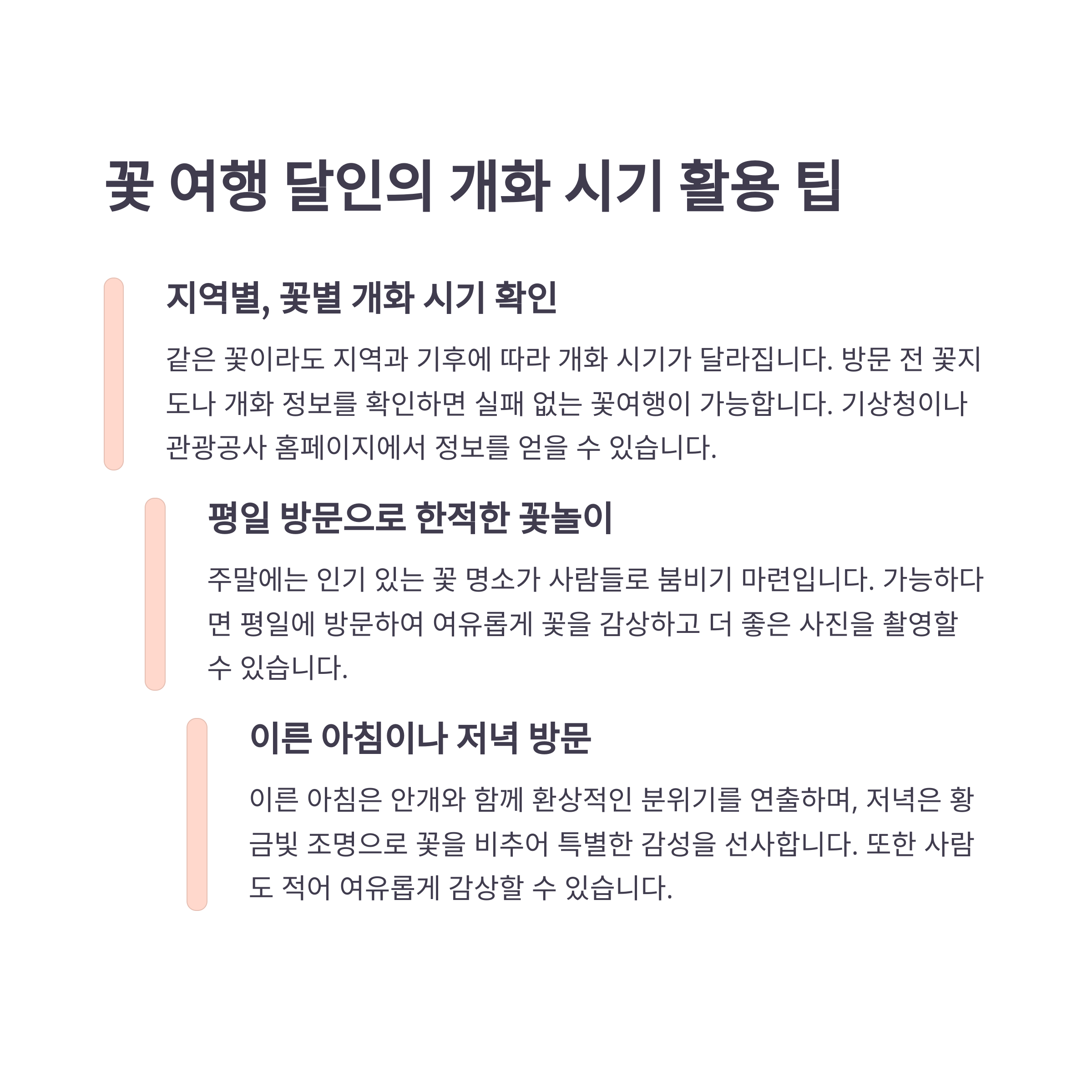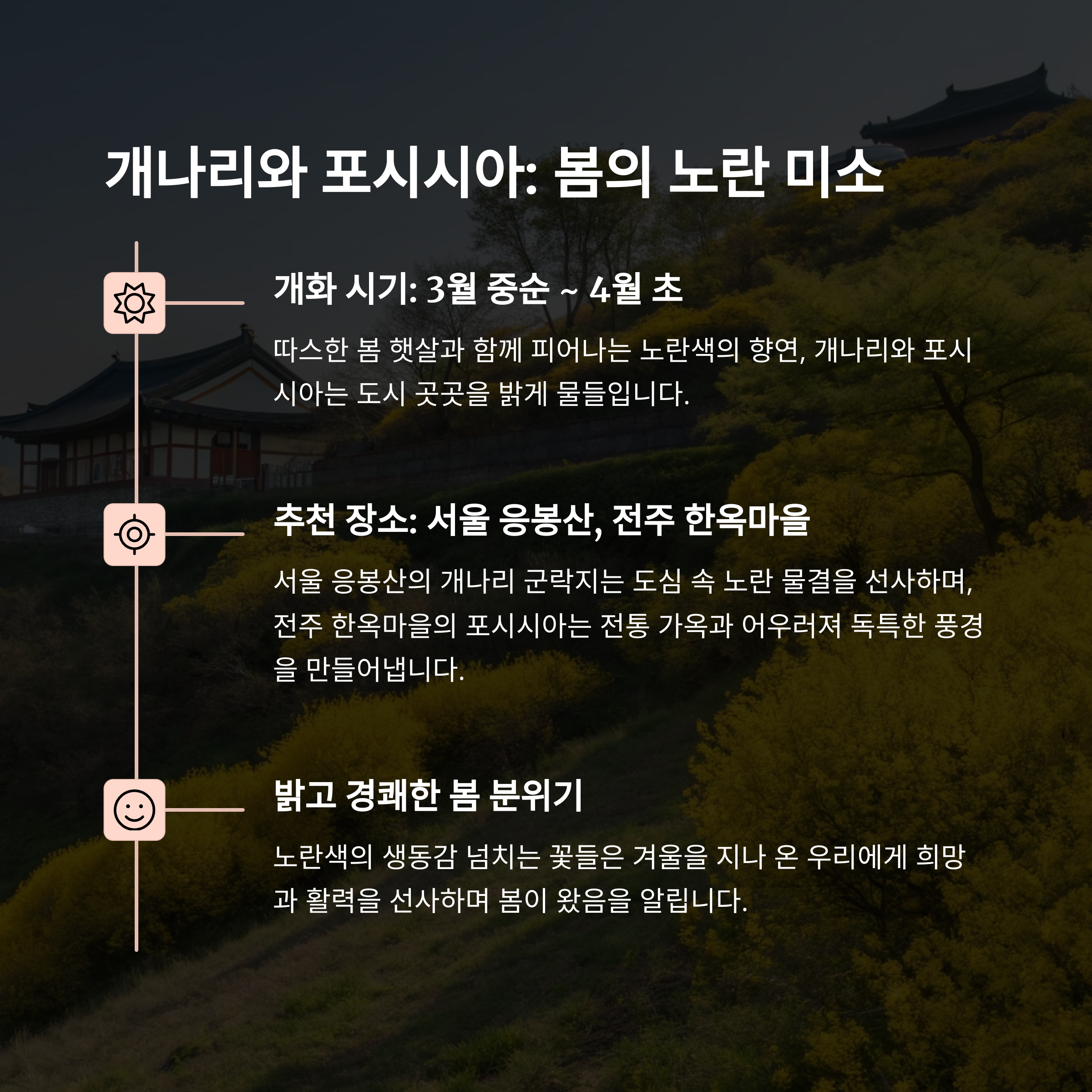 | 봄꽃 종류 | 개화 시기 | 명소 추천 |