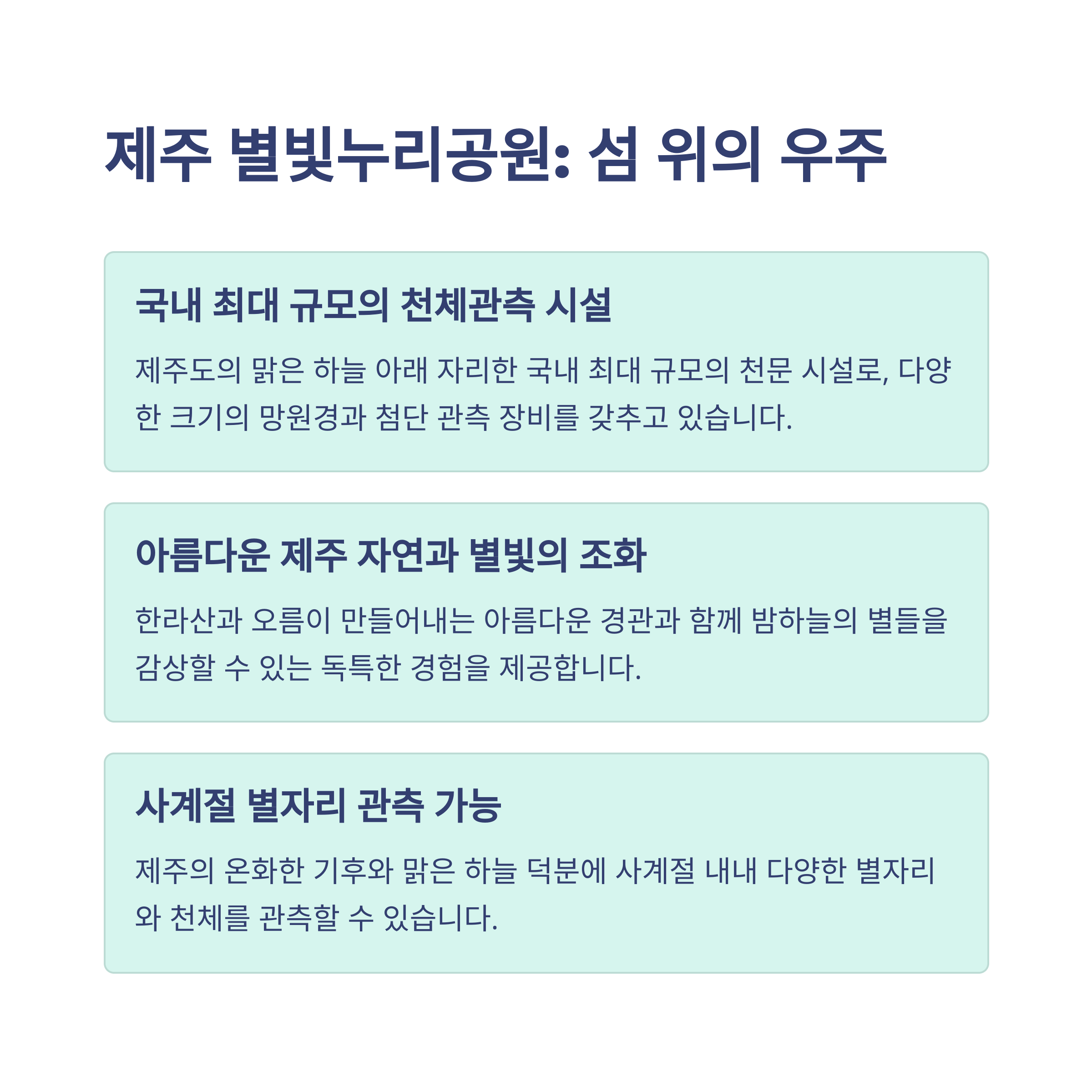 | 강원도 영월, 서울 양평, 제주 등 | 별자리 관찰, 해설, 천체사진 촬영 | 빛 공해 없는 환경, 고지대 위치 |