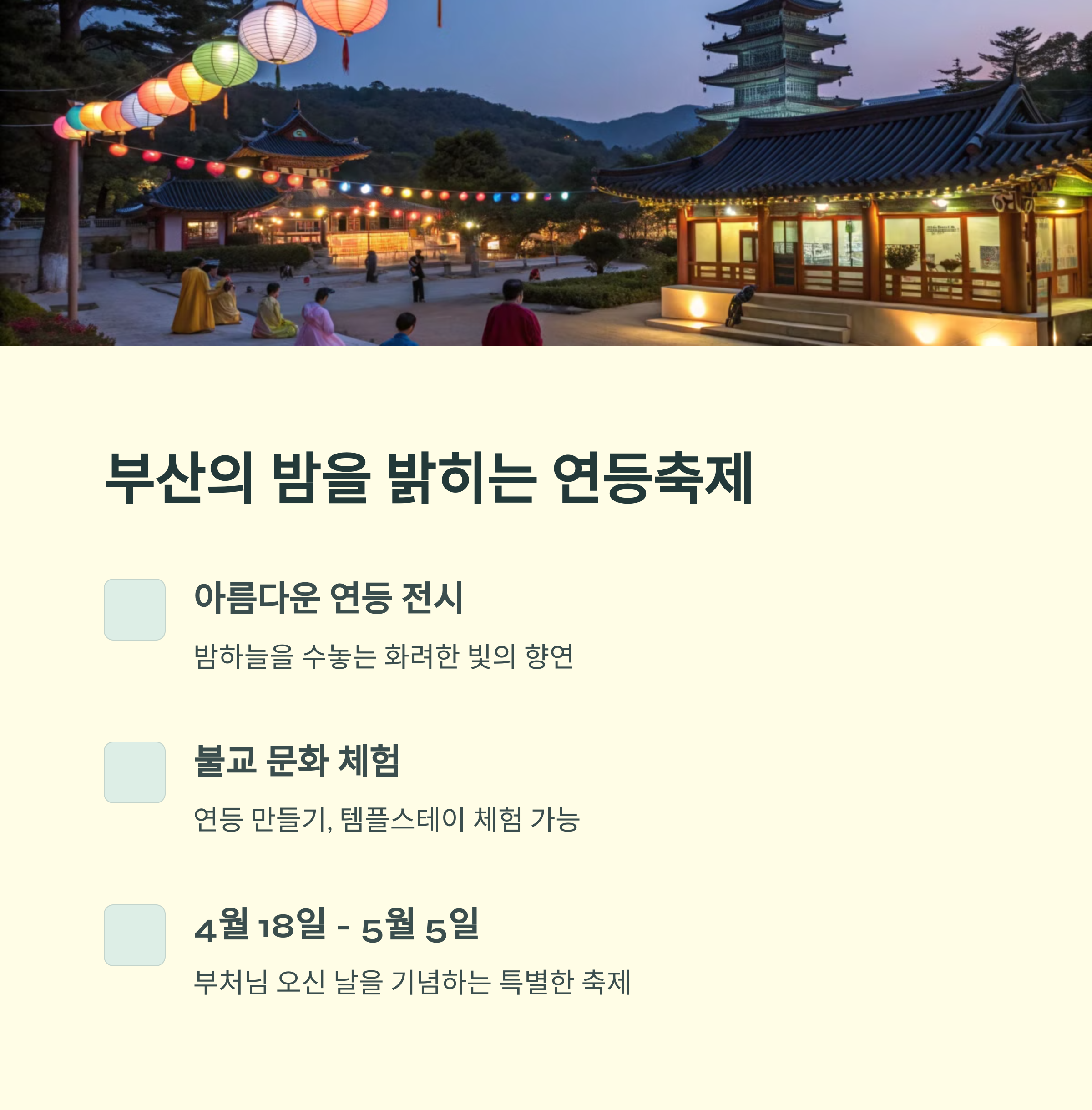 | 봄축제 일정 | 2025년 4월 전후로 전국에서 다양한 봄 축제 진행 |