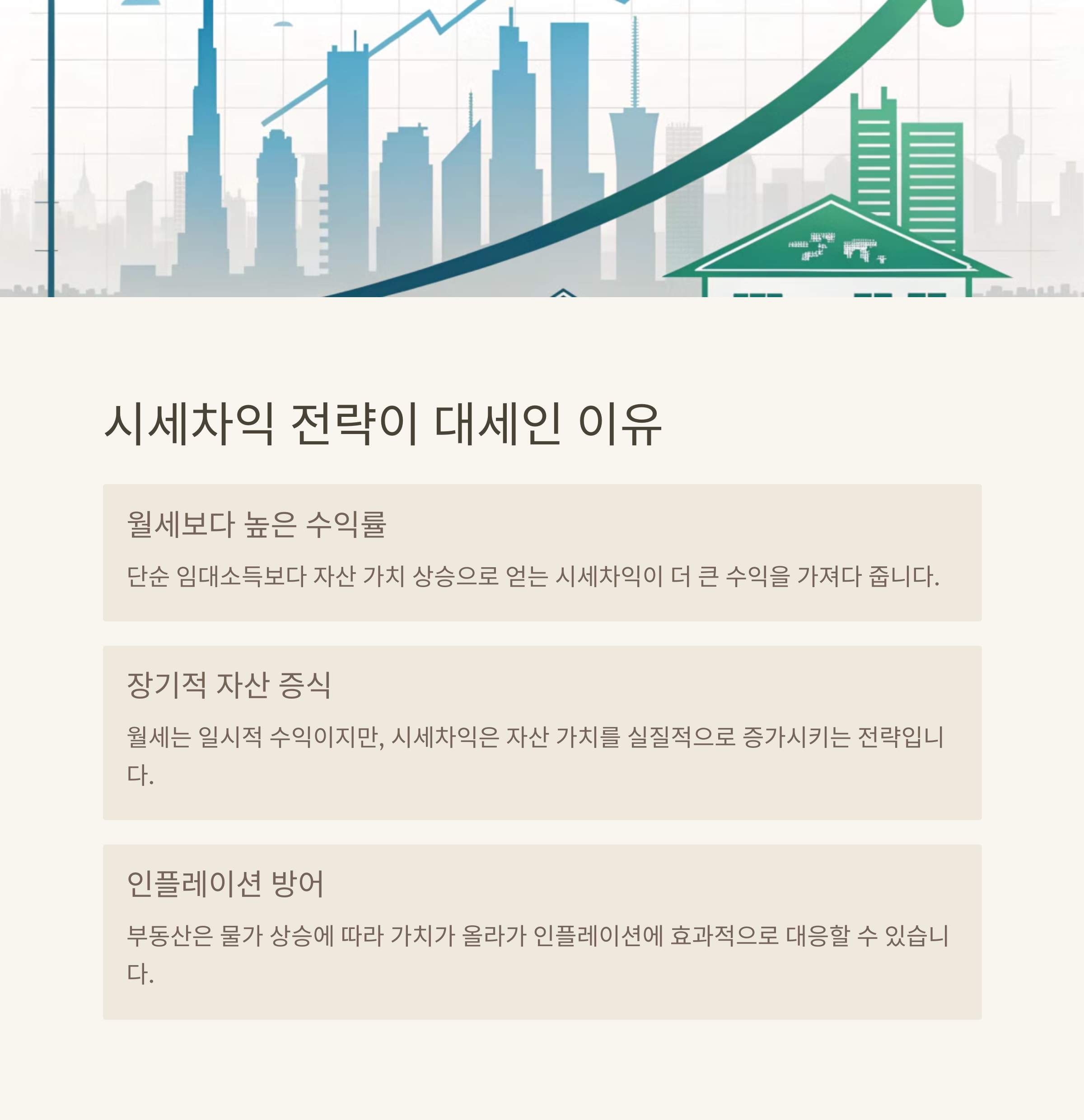 | 시세차익 전략 | 현재 부동산 시장의 핵심 투자 방향입니다. |