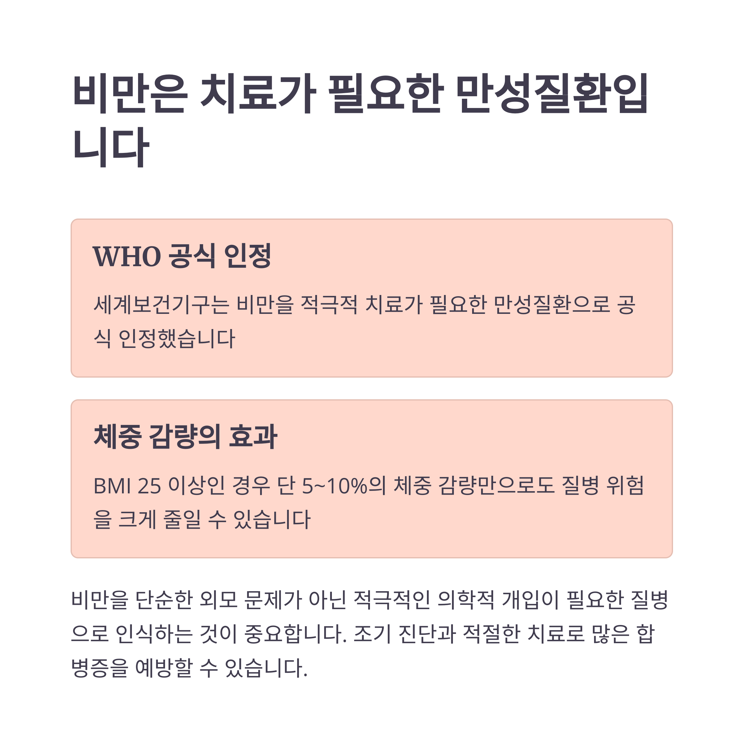 비만은 단순한 개인 문제가 아니라 국가적 문제로 확대되고 있습니다.