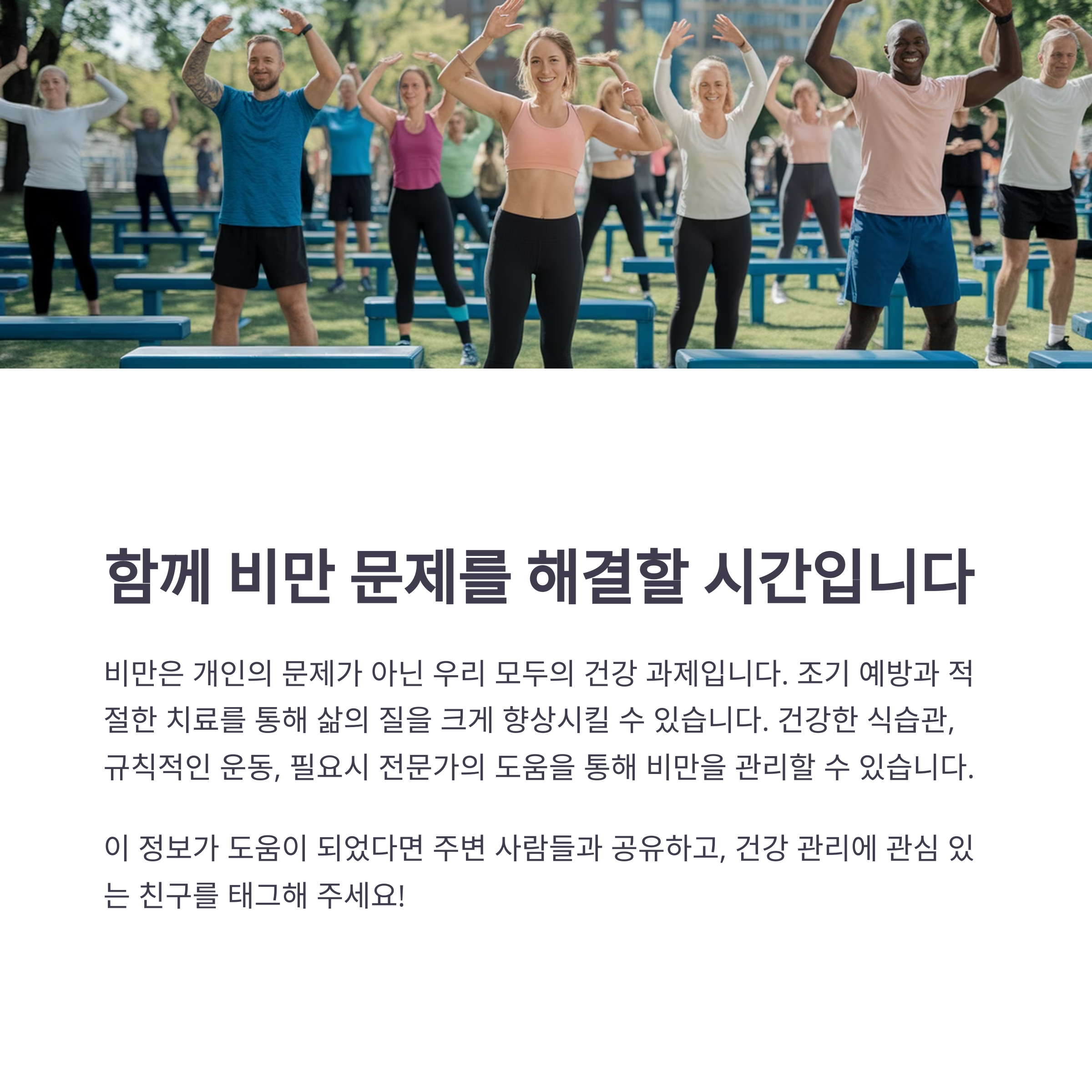 비만 문제는 전 개인과 사회가 함께 해결해야 할 주요 과제입니다.