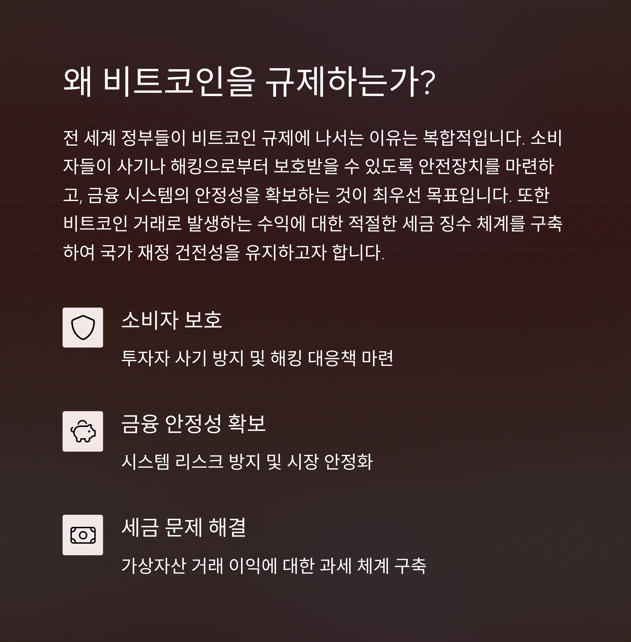 비트코인 규제 이유 소비자 보호와 금융 안정성 확보를 위한 정부 조치