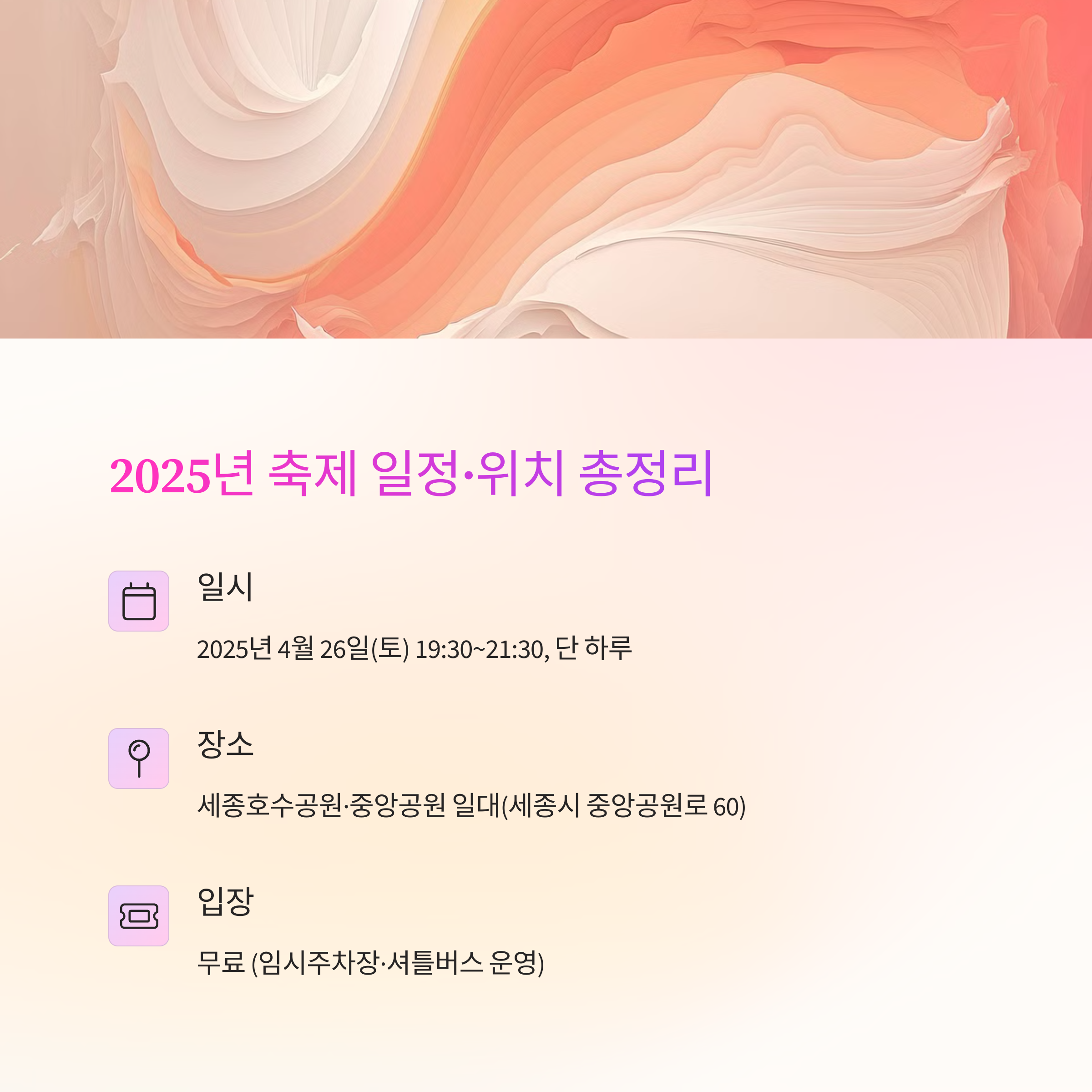 2025년 세종 낙화축제 일정은 4월 26일(토)~27일(일) 로 예정되어 있습니다