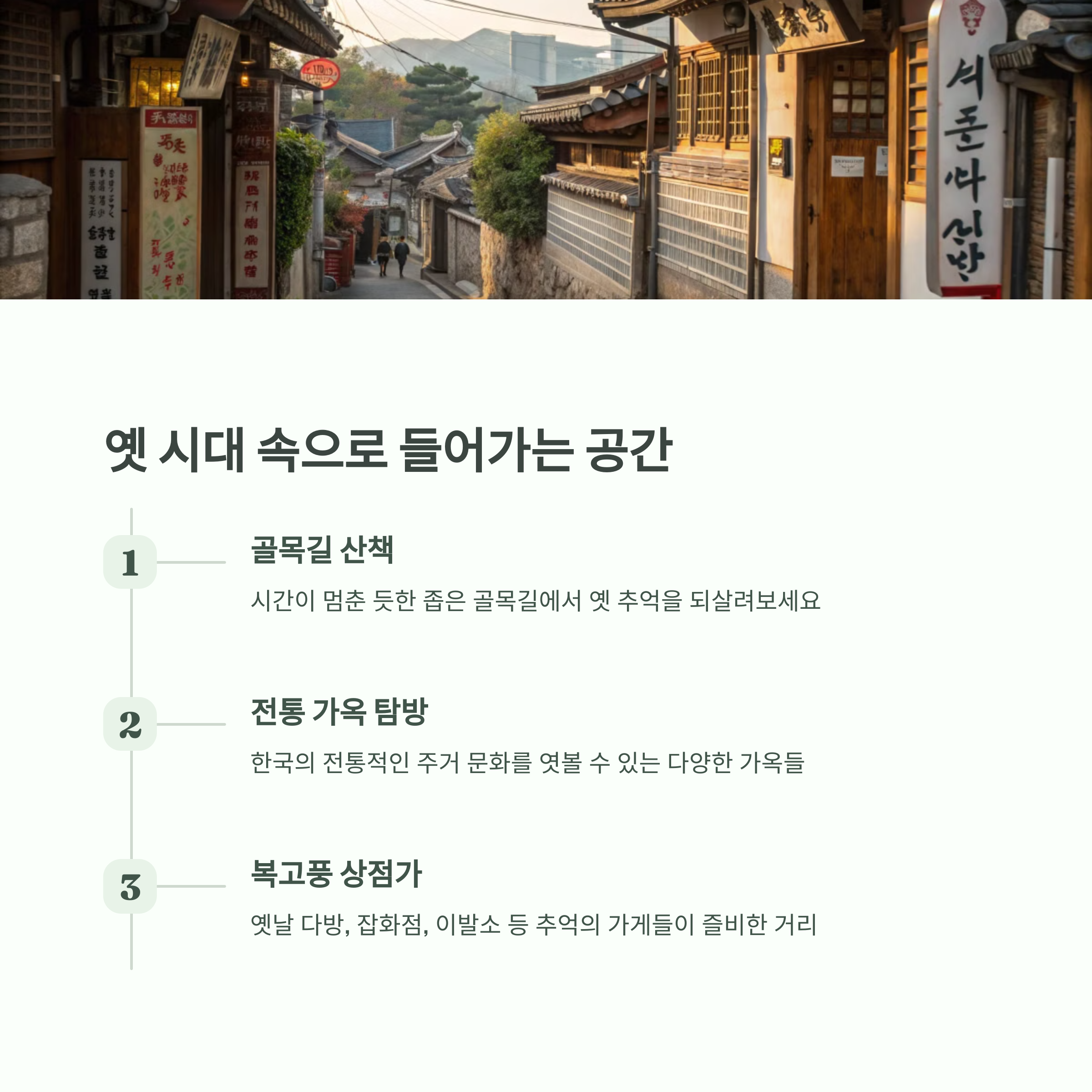 60~80년대 골목, 전통 상점가, 교실, 달동네 등 다양한 시대 배경 포토존이 마련되어 있어 드라마 속 주인공처럼 사진을 남기기에 좋습니다.
