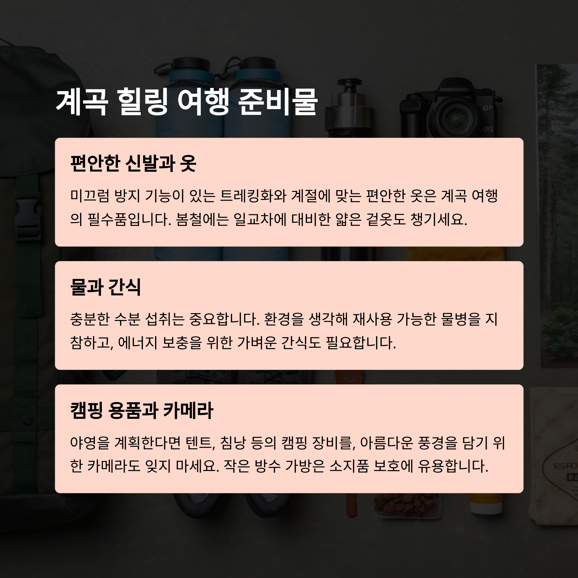 봄 계곡 여행 시 꼭 챙겨야 할 준비물은?