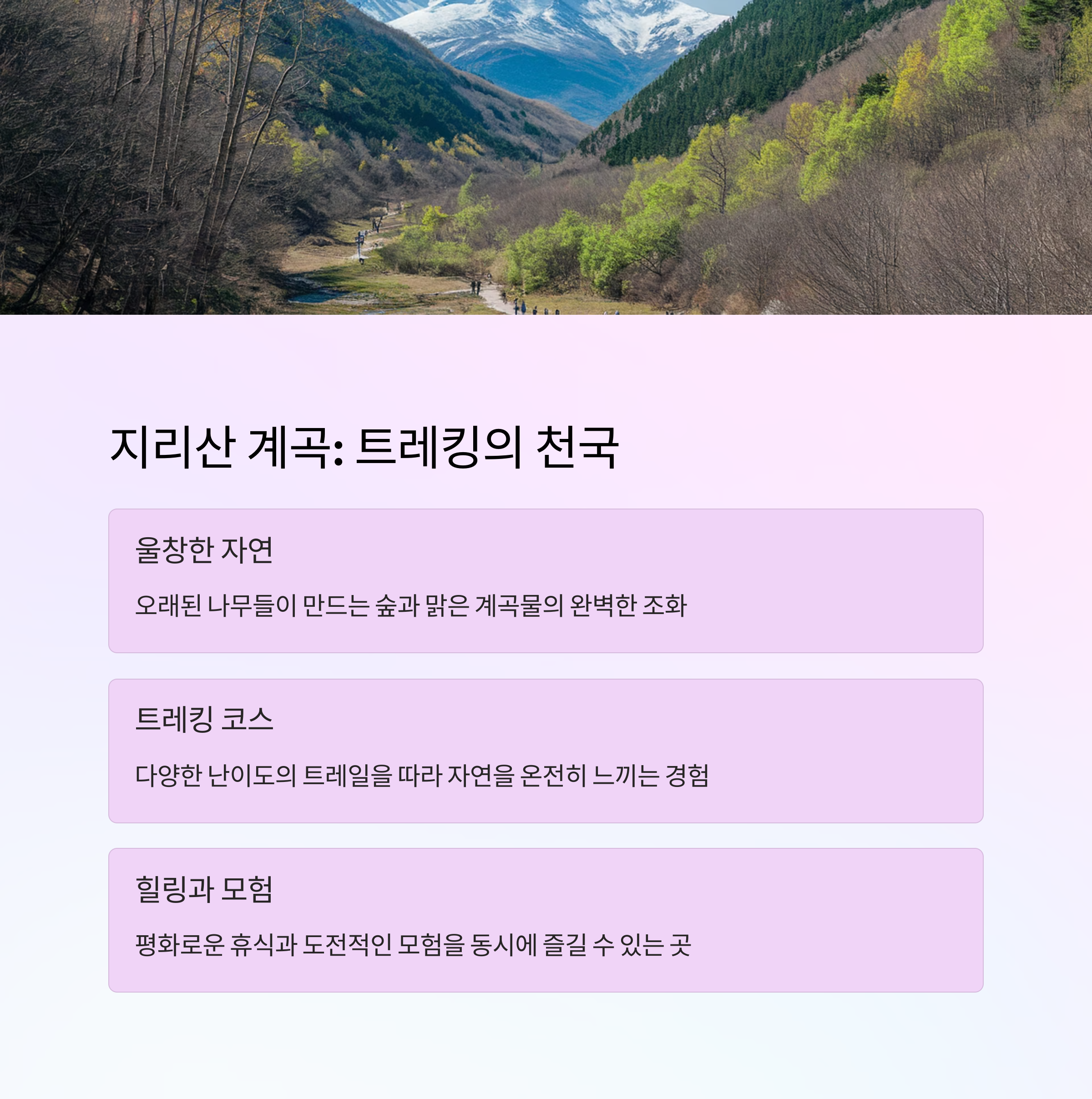 Q. 지리산 계곡에서는 어떤 활동을 추천하나요? |