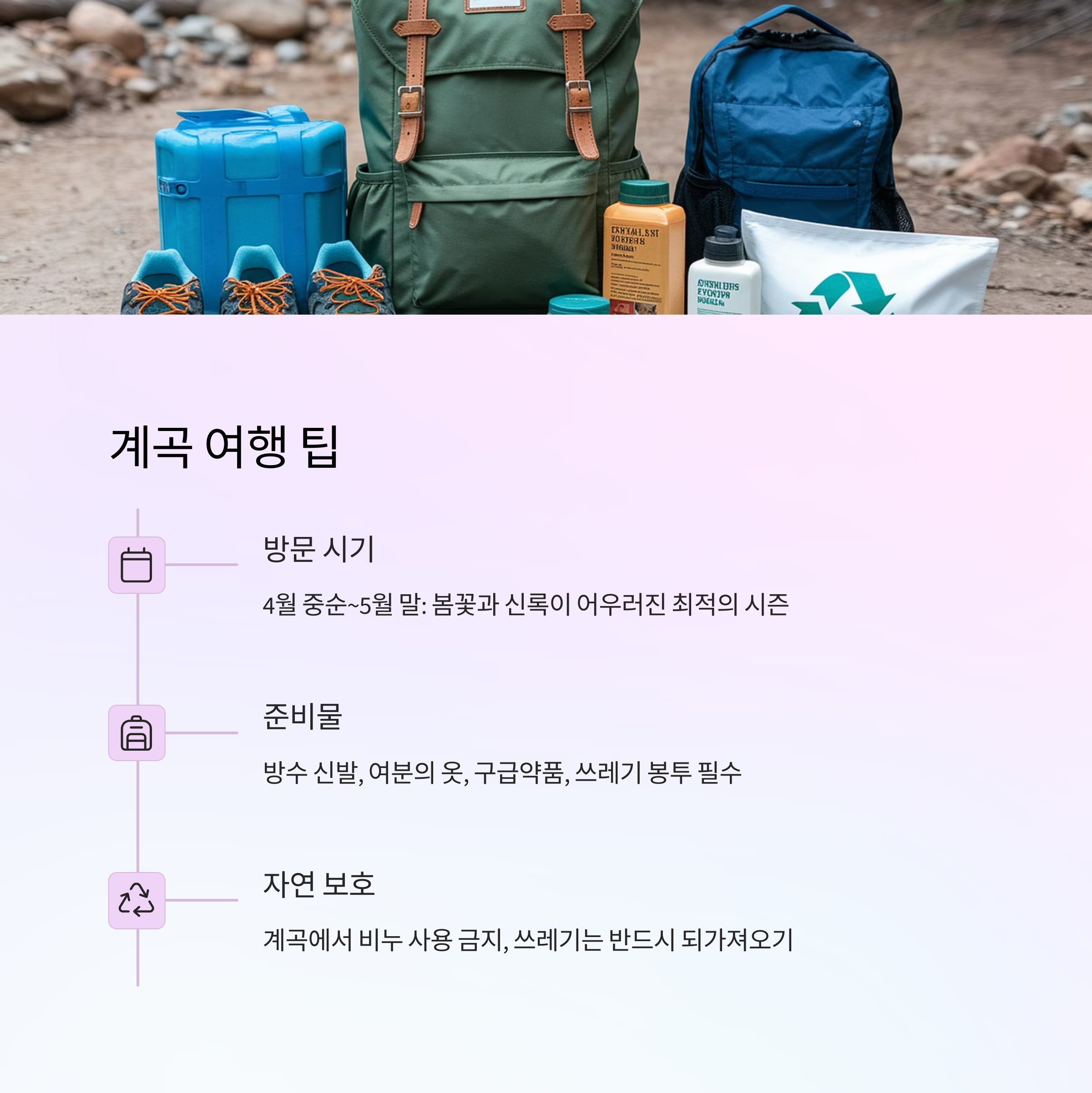 이번 봄에는 가까운 계곡을 찾아 특별한 힐링의 시간을 가져보세요!
