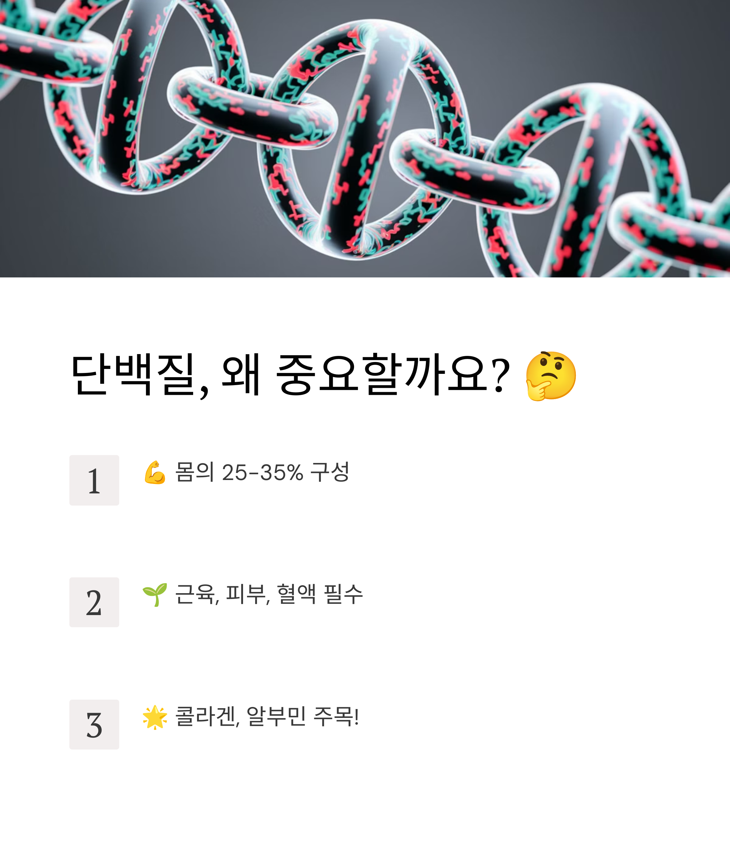 - 💪 피부와 연골, 뼈, 혈관 등 신체 조직을 구성하는 주요 단백질