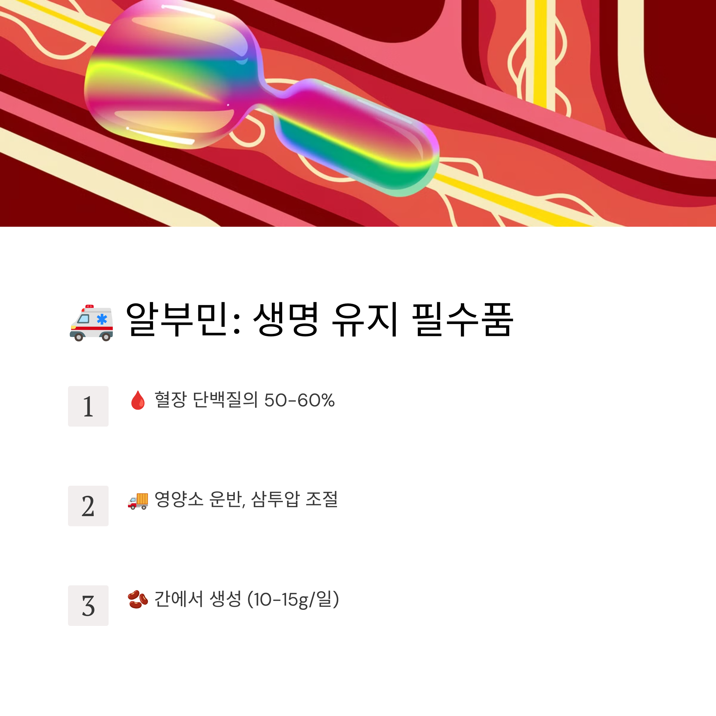 - 🩸 혈액 내 가장 풍부한 단백질로 간에서 합성