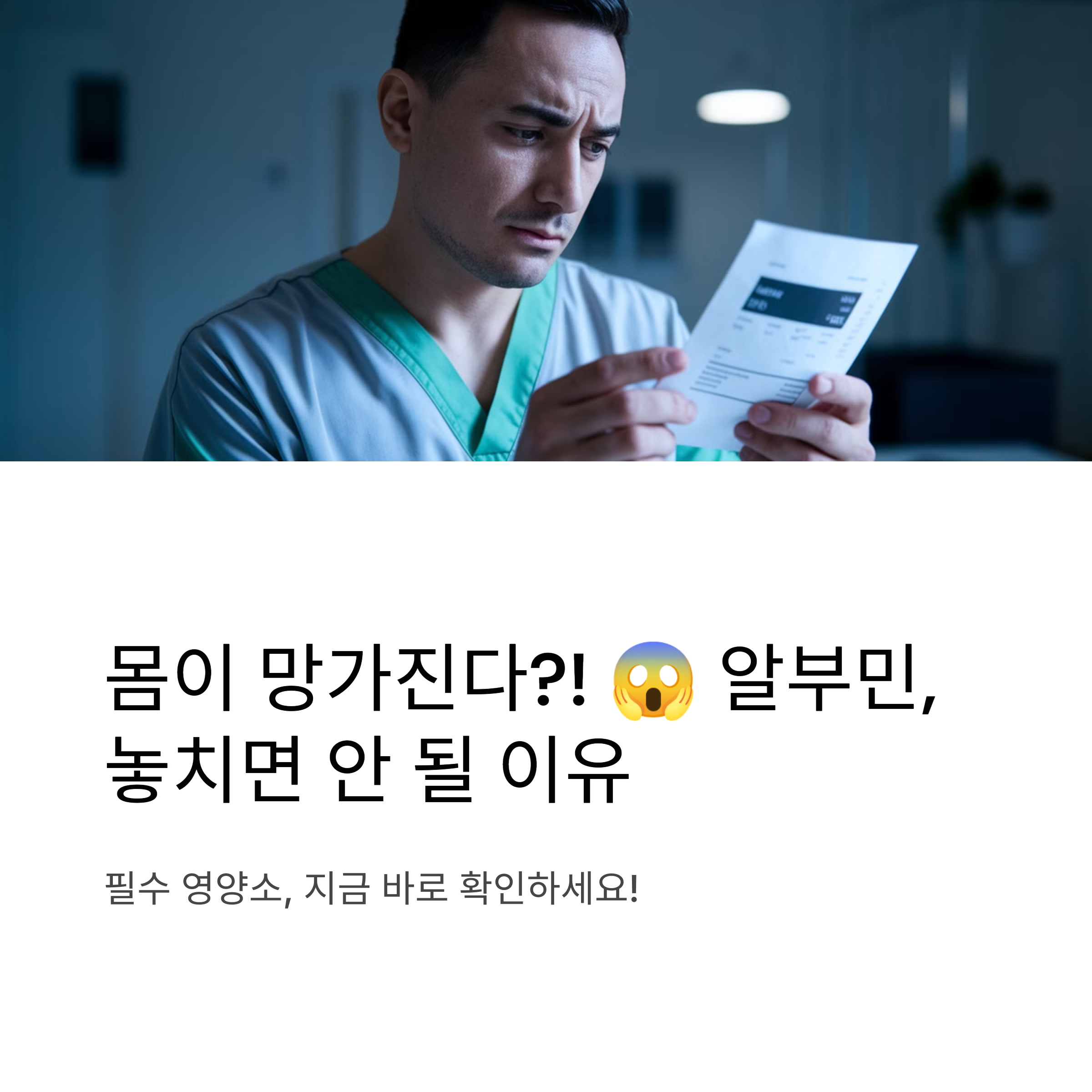 오늘부터라도 달걀, 닭가슴살, 콩류 등을 챙겨 먹으며 알부민 수치를 관리해 보세요. 작은 변화가 큰 건강 차이를 만듭니다.