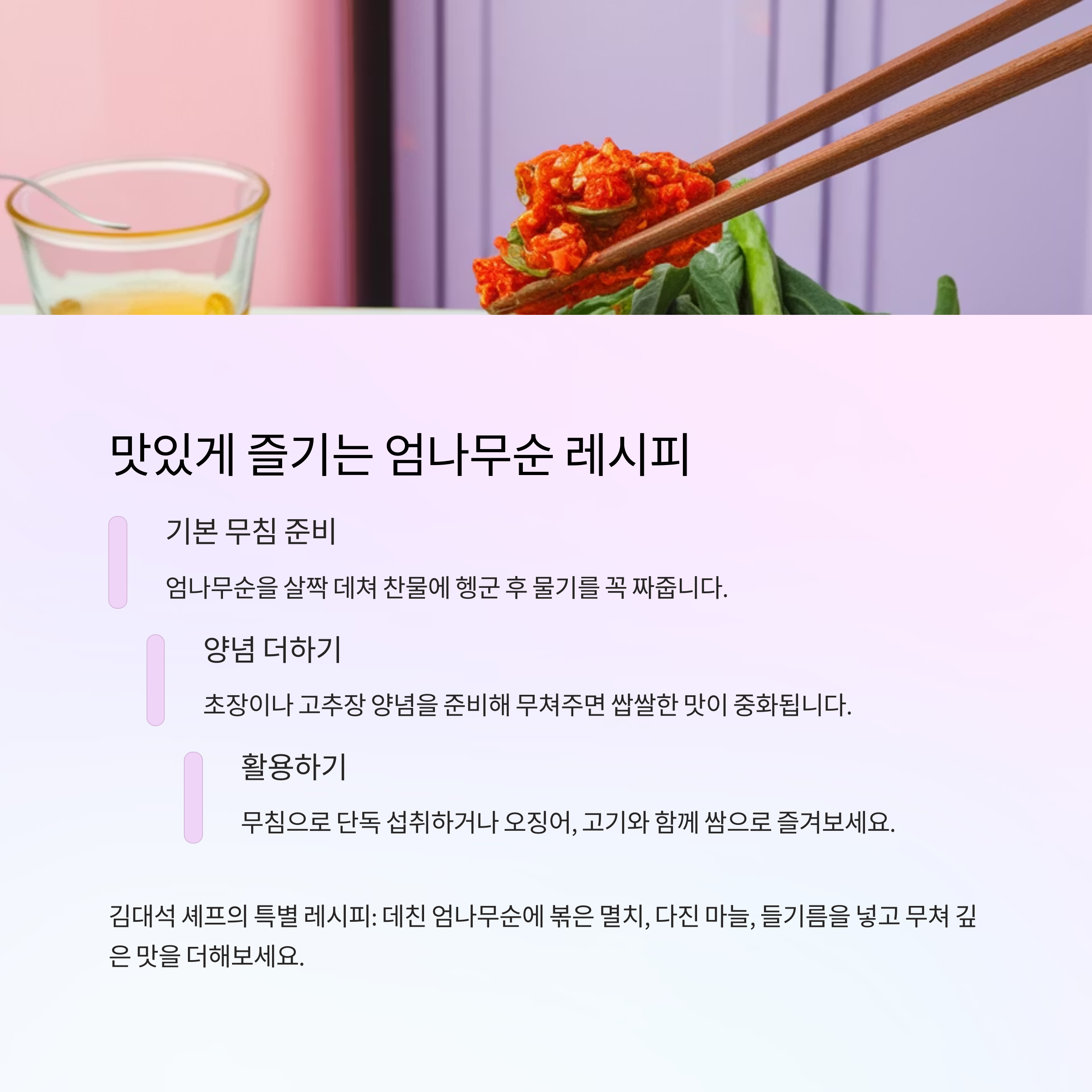 올바른 보관과 조리를 통해 엄나무순의 장점을 최대한 활용하시길 바랍니다.