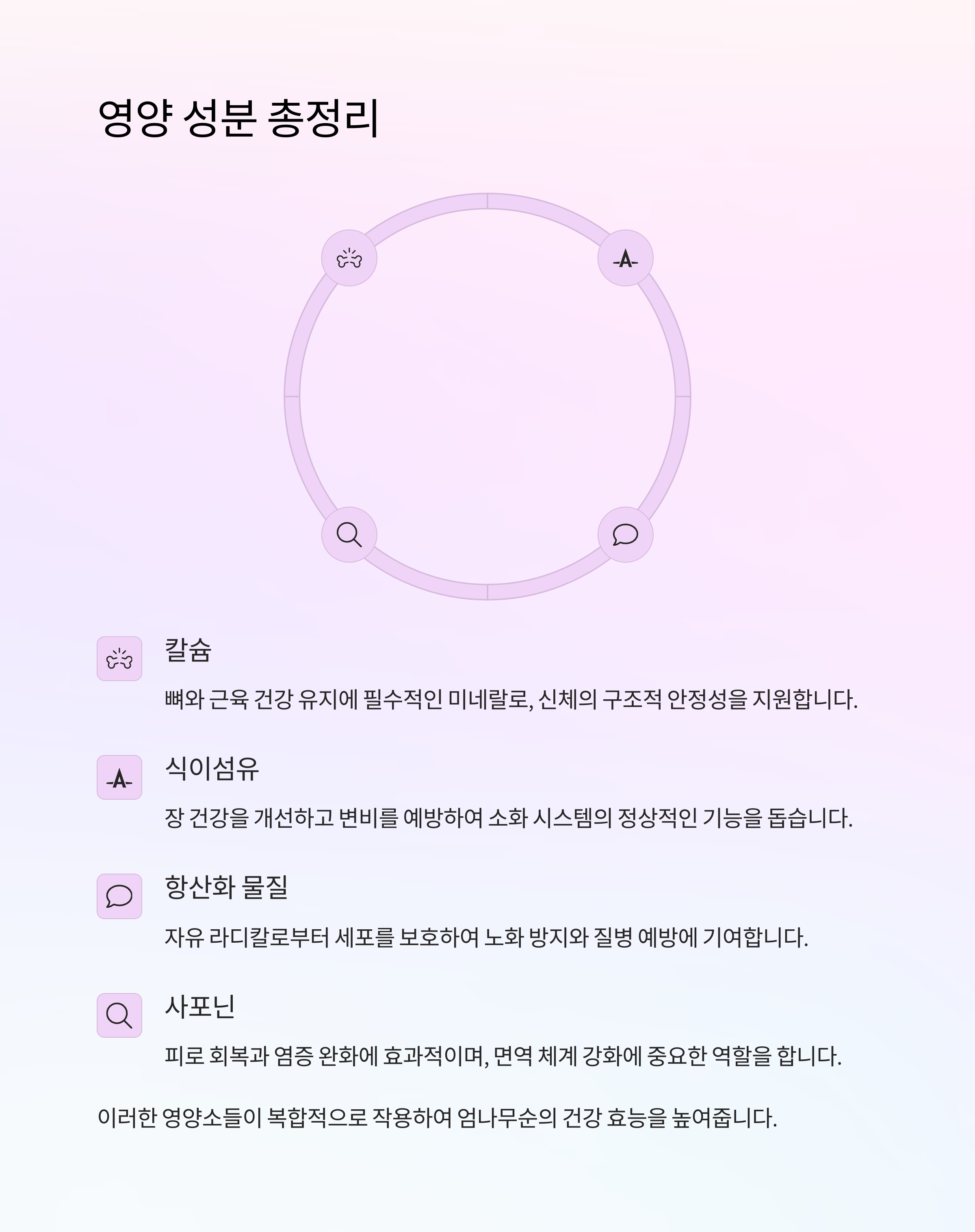 특히 항염증, 면역력 강화와 같은 측면에서 많은 효과를 기대할 수 있습니다.