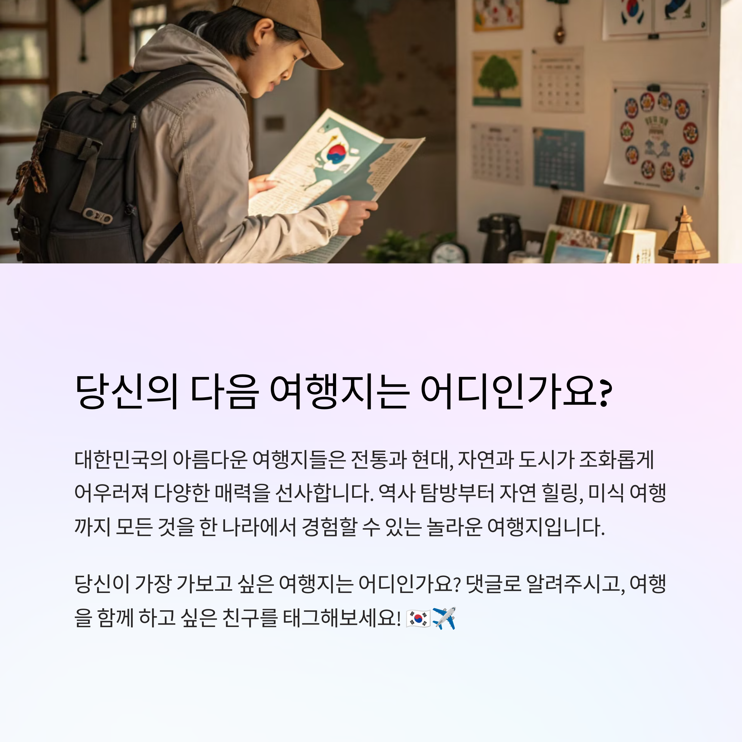 여러분이 다녀온 국내 여행지 중 가장 기억에 남는 곳은 어디인가요? 댓글로 공유해주시면 다른 독자들에게도 큰 도움이 됩니다!