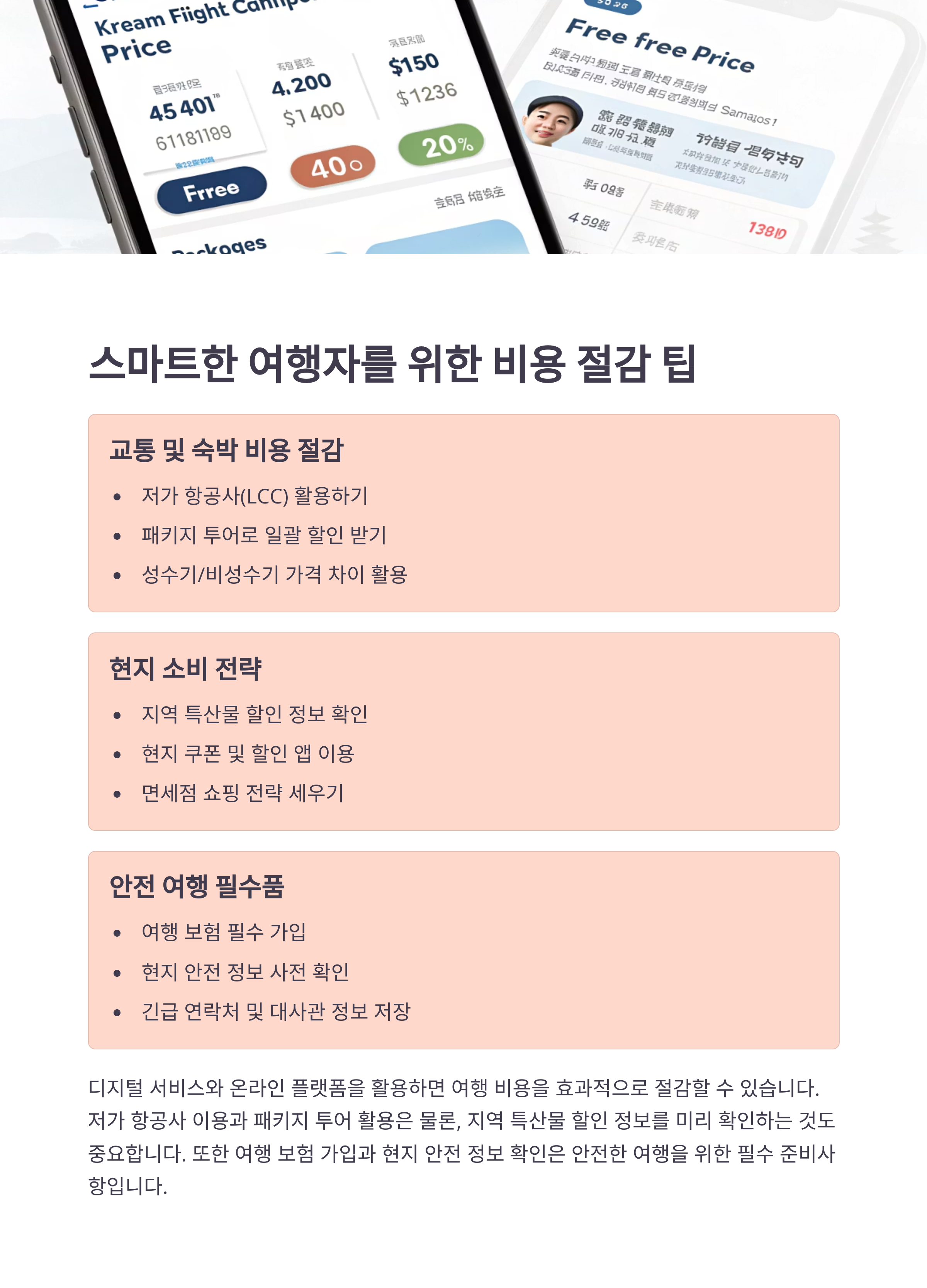 3. 저가 항공과 패키지 상품 이용은 비용 절감에 도움을 줍니다.