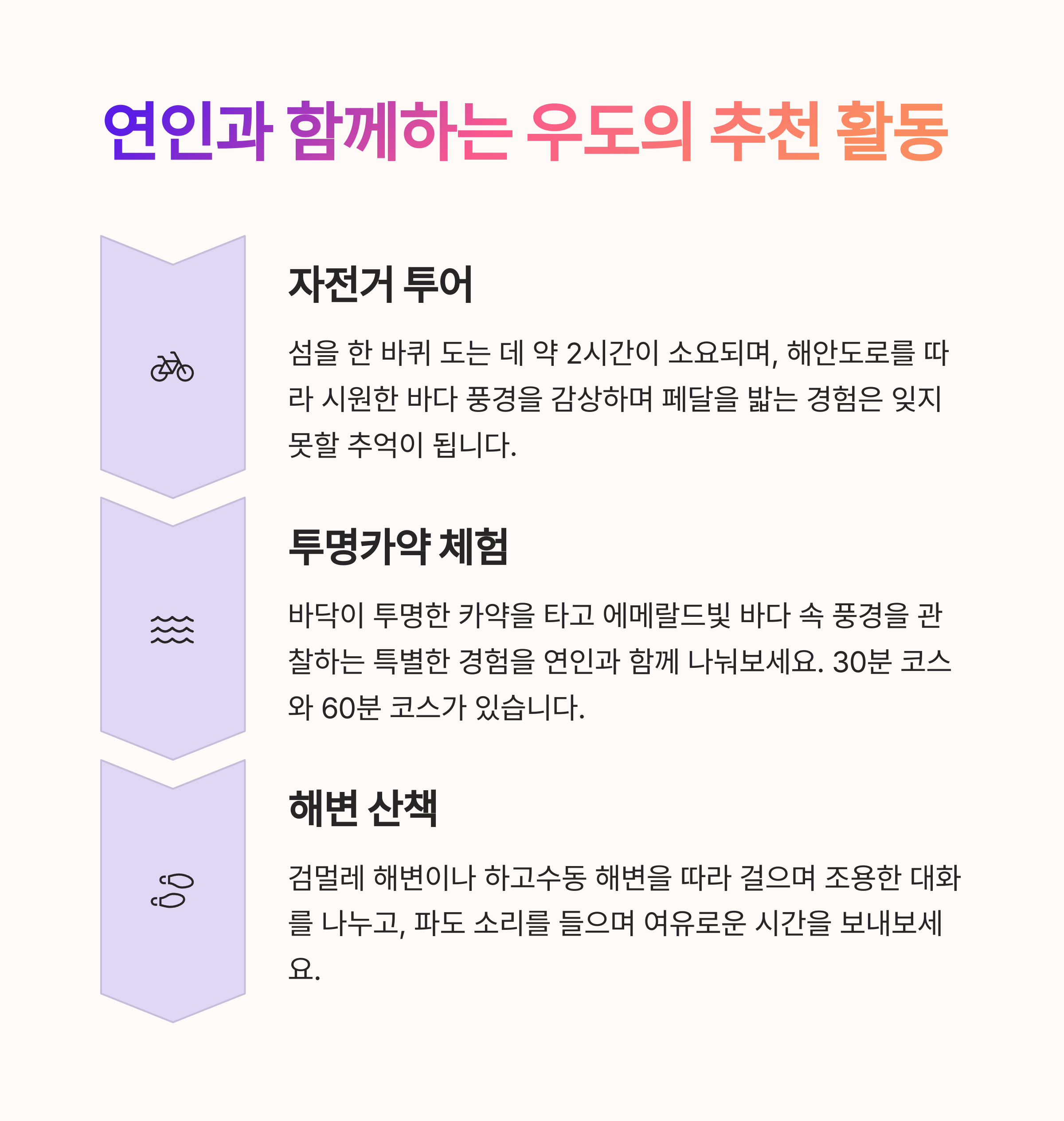 우도는 단순한 여행지가 아니라 소중한 사람과 추억을 만드는 완벽한 장소입니다.