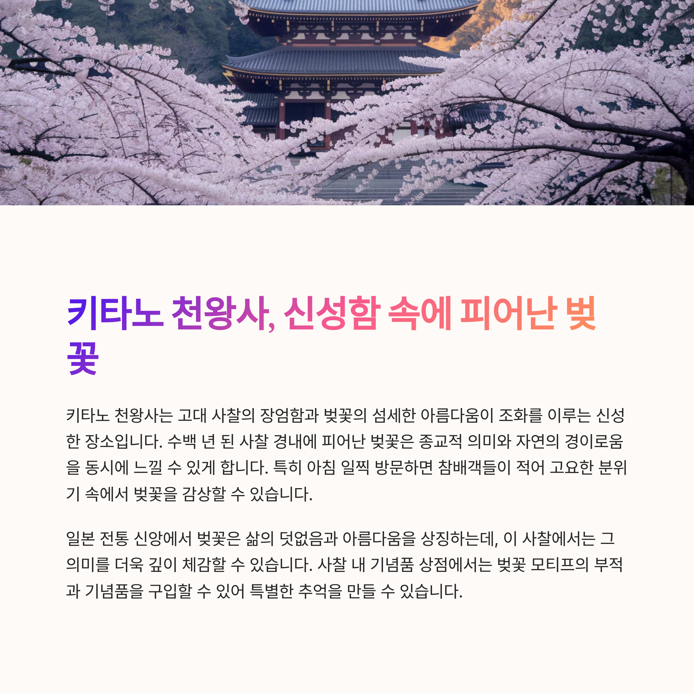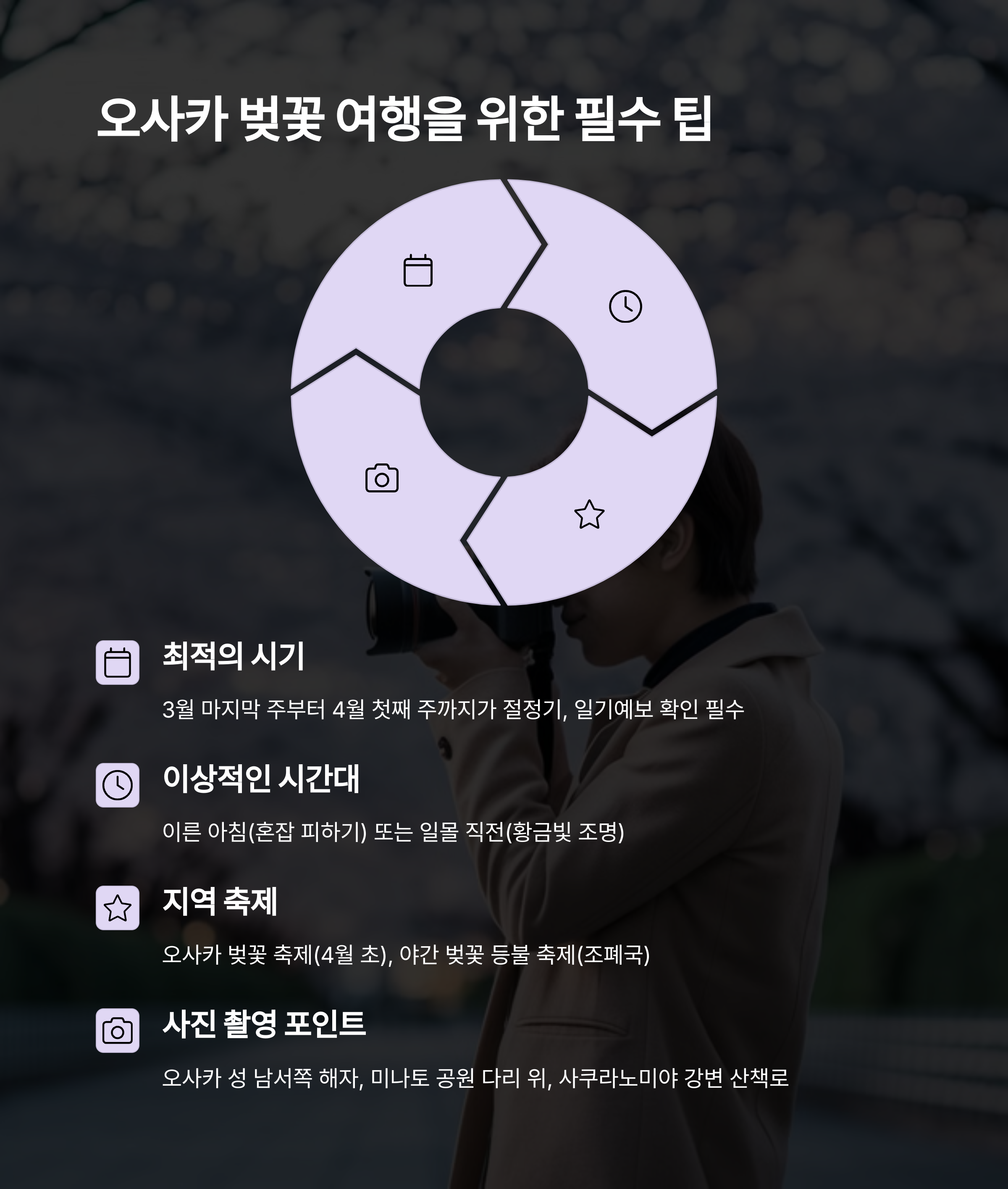 최적 시기 | 벚꽃은 보통 3월 말부터 4월 초 사이에 절정 |