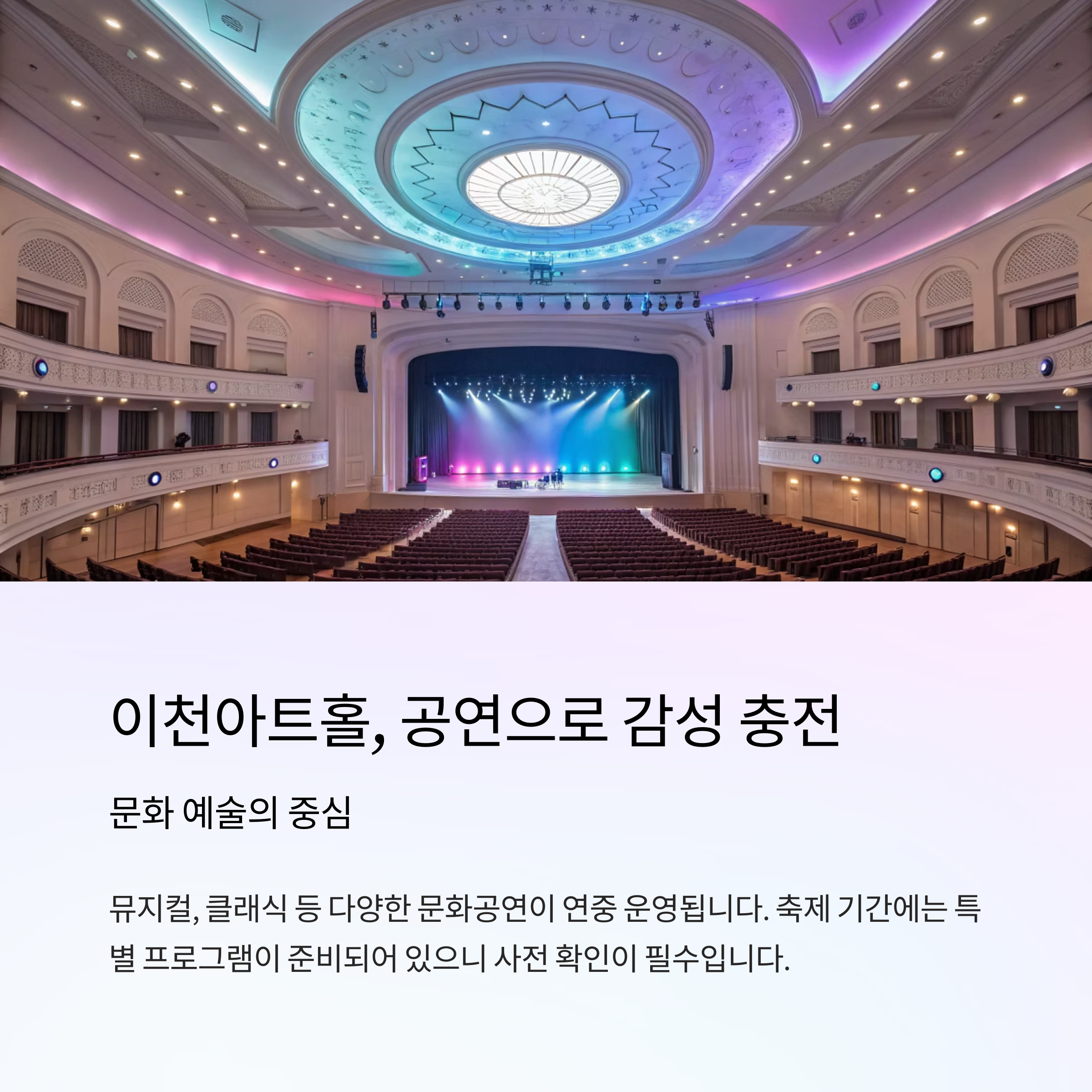 - 저녁: 아트홀 공연 관람 또는 쇼핑