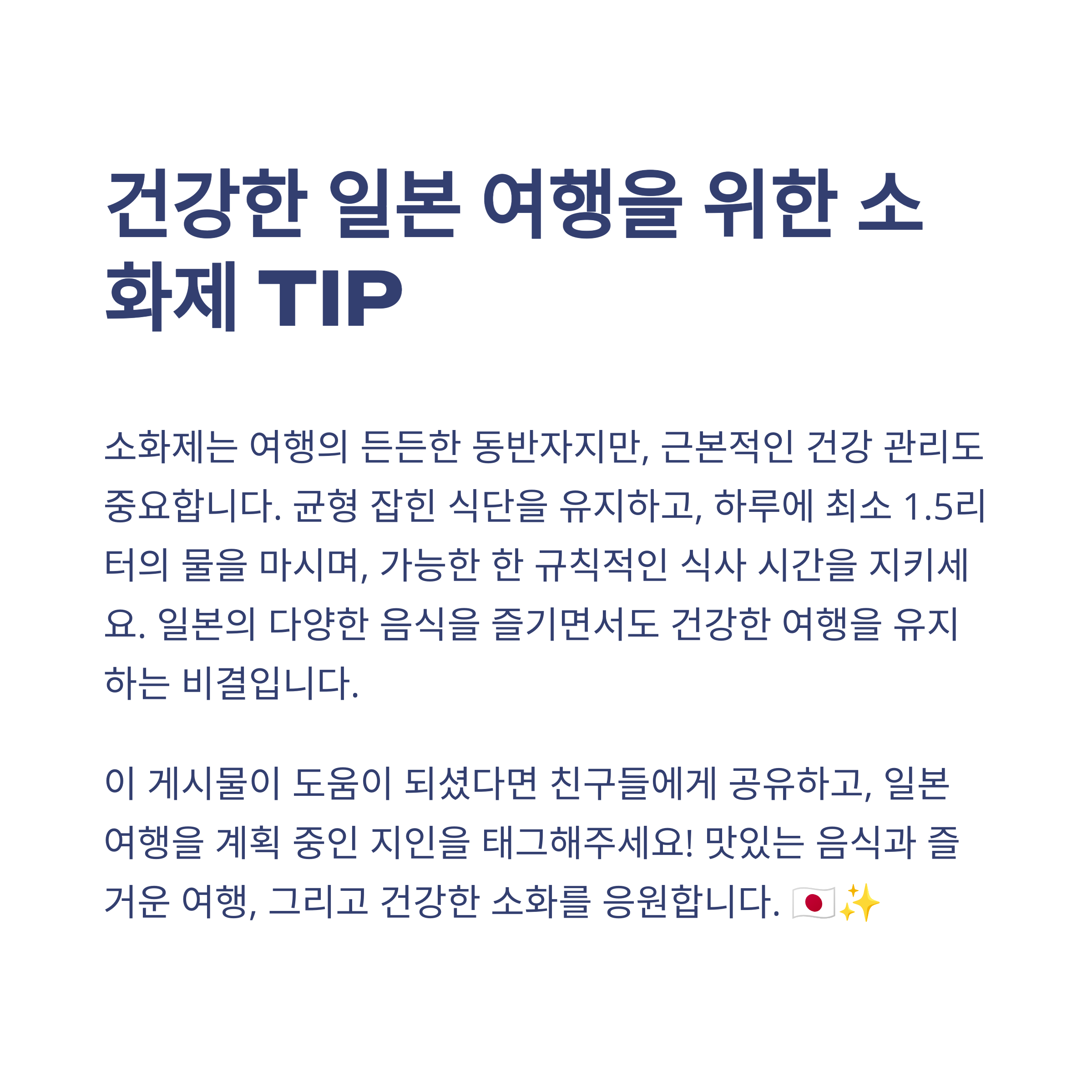 일본에서 직접 사용해 본 소화제는 어떤 게 효과가 있었나요? 여행 중 갑작스러운 위장 트러블을 어떻게 해결하셨는지도 함께 공유해주세요! 댓글을 통해 유용한 정보 나눠보아요.
