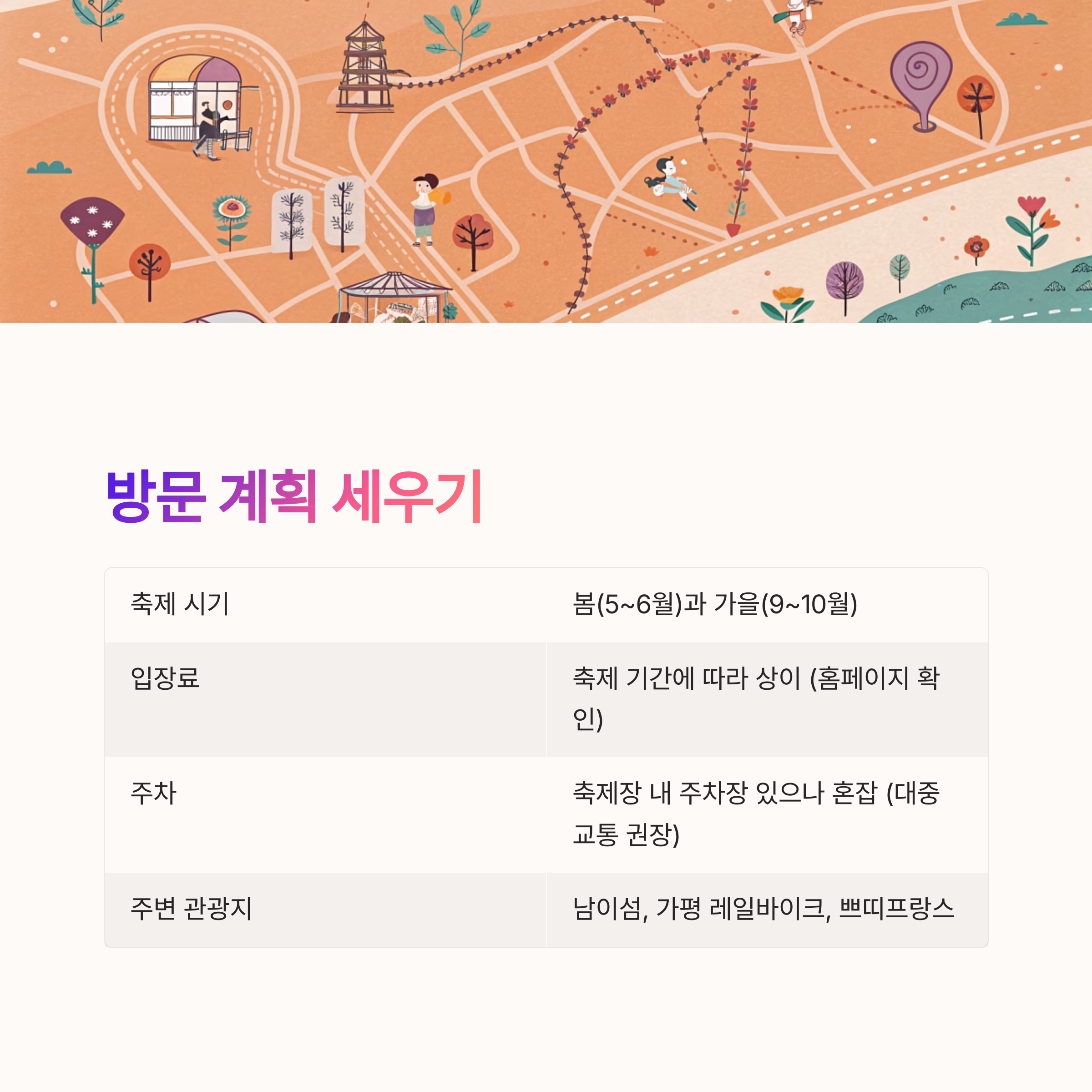 자라섬 꽃축제 방문 계획 세우기 🗺️