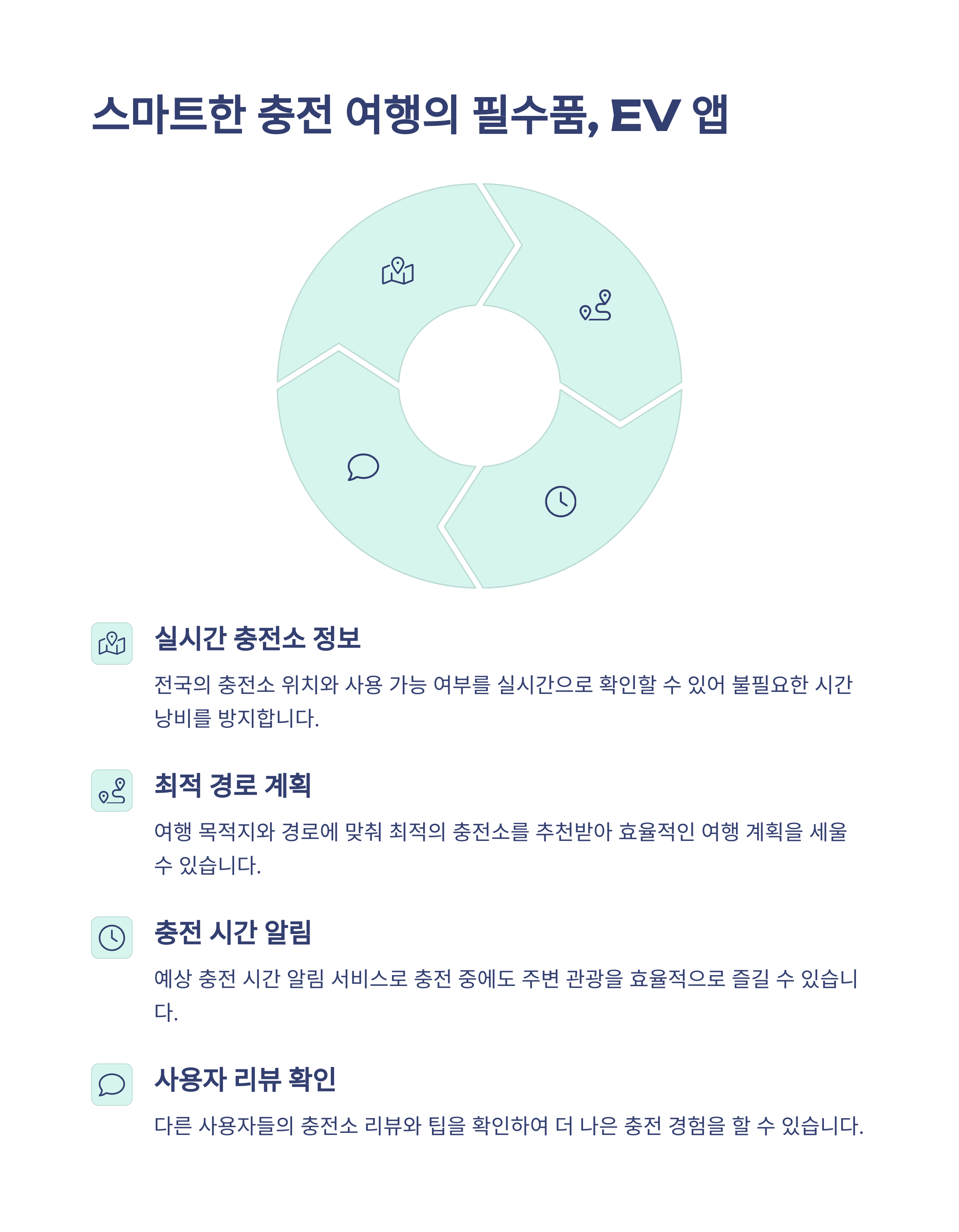 | EV Infra 앱으로 상세 정보 확인 가능 | 공원, 해변, 계곡 등과 인접해 힐링 여행 가능 | 관광지 중심으로 친환경 여행 환경 조성 중 |