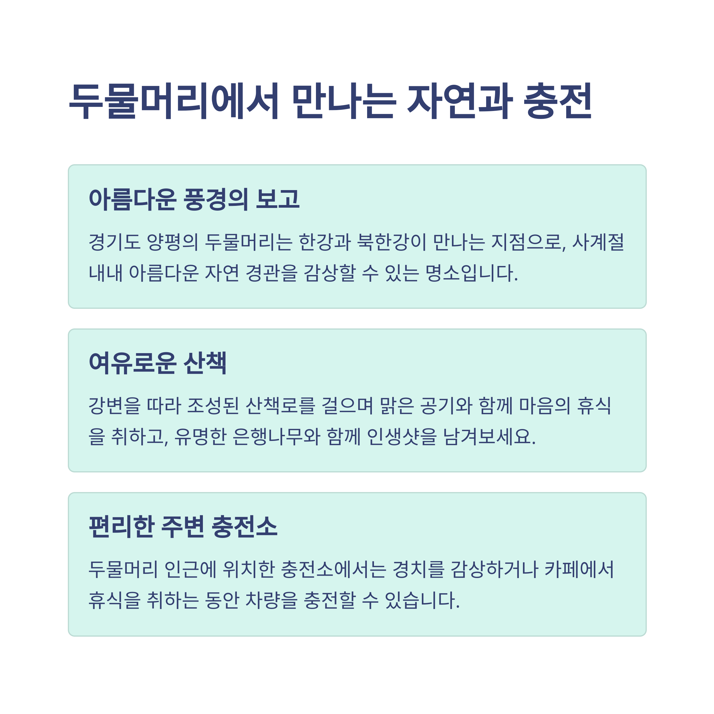 | 명소 인근 충전소 | 자연경관과 휴식 | 충전소 설치 현황 |