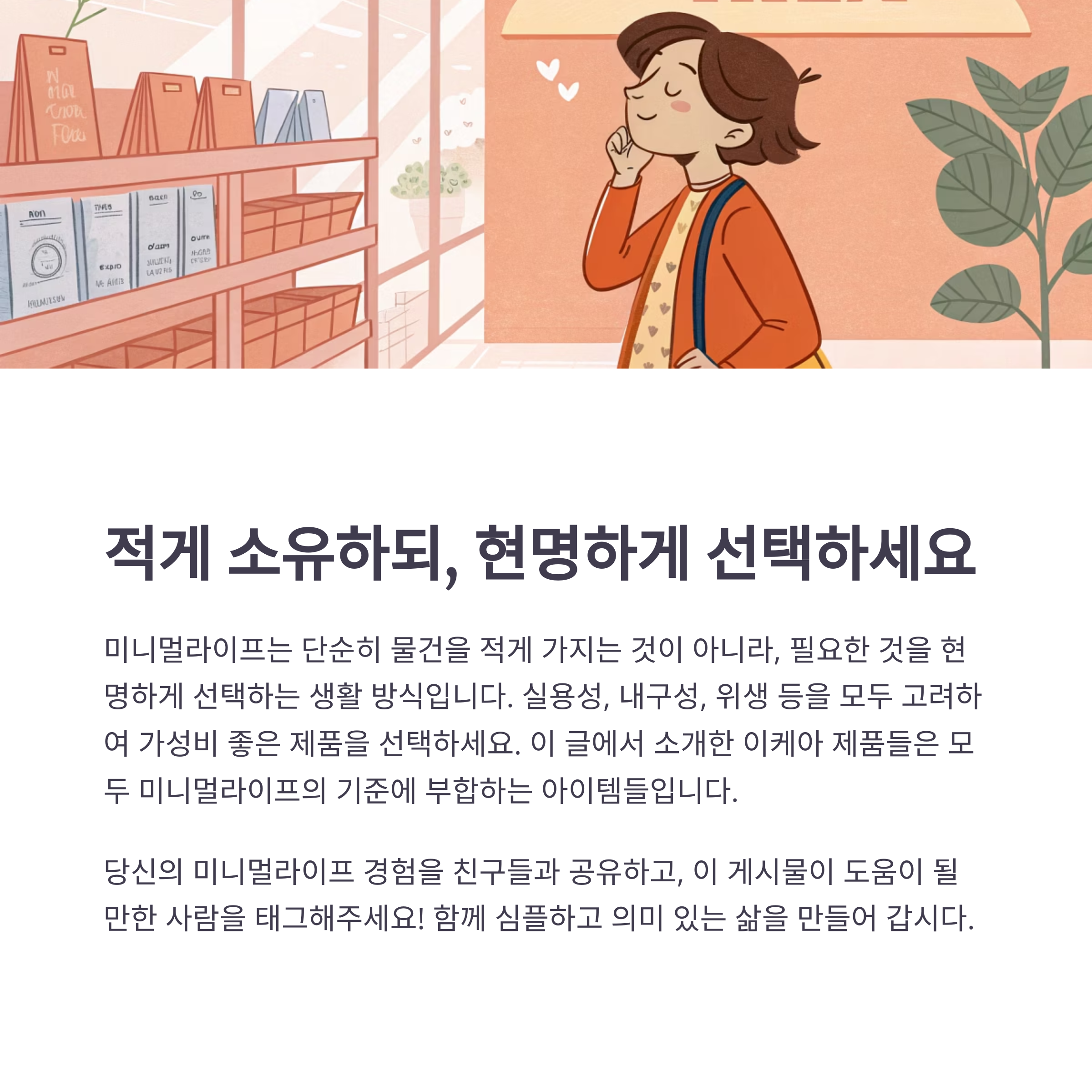 끊임없는 조정과 선택이 미니멀라이프에 있어 지속적 성취감을 제공합니다.