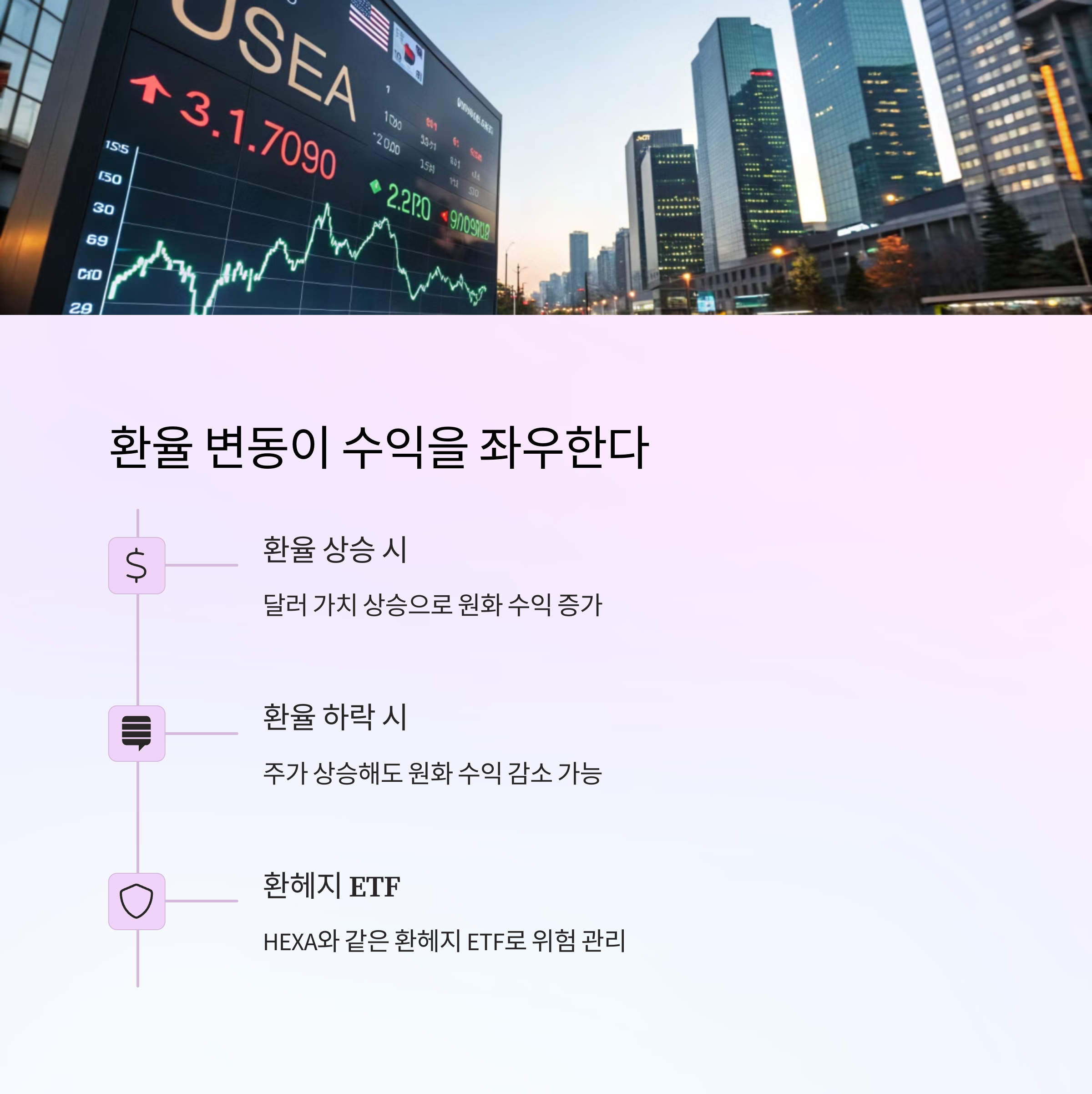 | 기술혁신 중심의 장기 투자 전략 유효 | 분산 투자로 리스크 최소화 가능 | 환율 변동성에 따른 투자 리스크 고려 |
